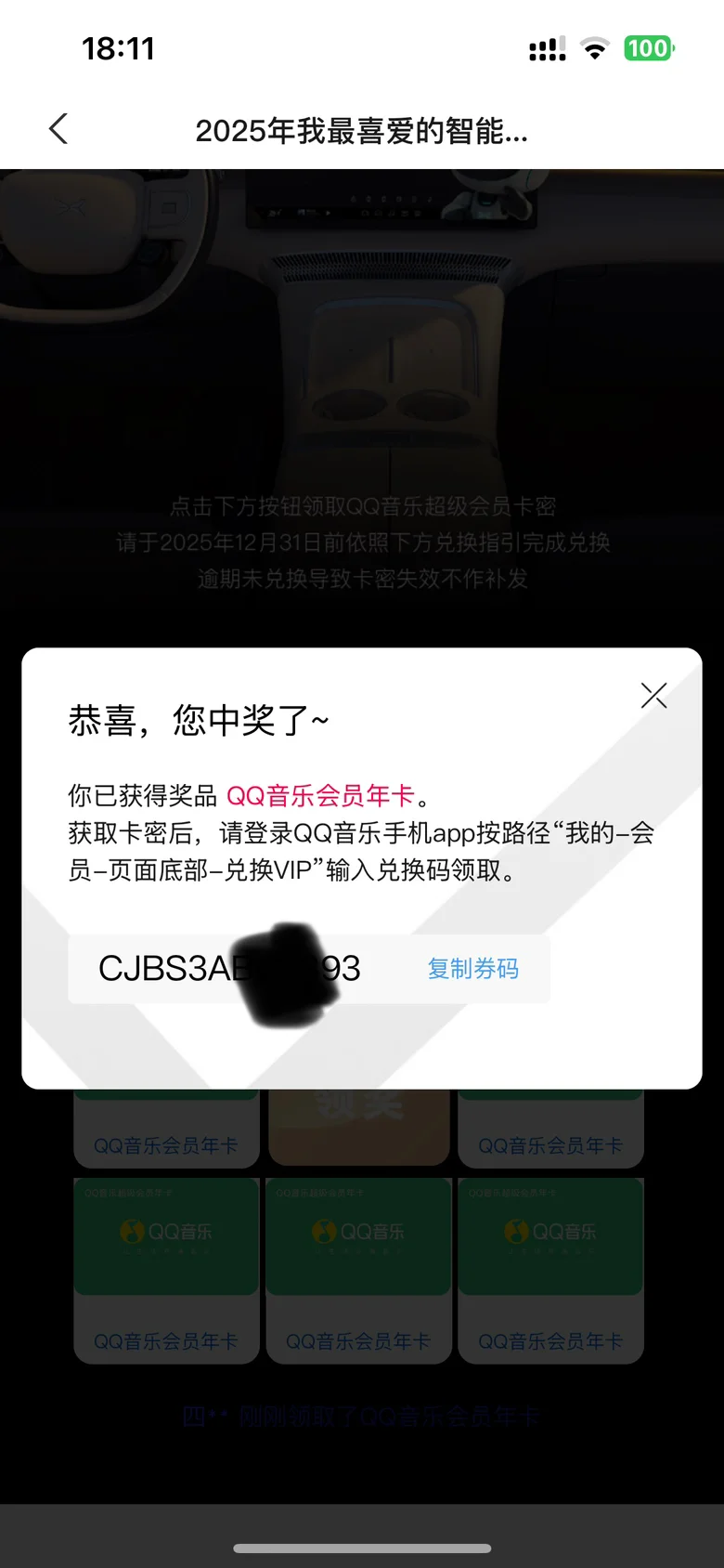 太开心了,参加小鹏社区活动真的可以中奖,中了qq音乐年会员😋😋😋 哈哈哈哈太感谢小鹏了,以后这样的活动一定多多举办,大家一定多多参与!下一个中奖的幸运者可能就是你哦😋😋😋有没有其他中奖的鹏友 评论区分享一下你的中奖截图!@社区活动小姐姐 @鹏友俱乐部小向导