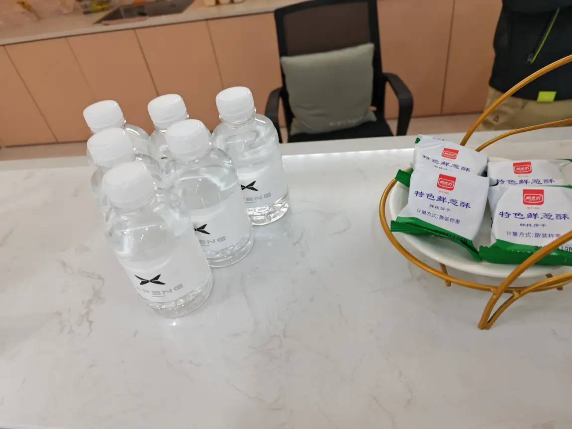 11点来配钥匙电池,小鹏售后还贴心的准备了工作餐和咖啡等热饮,矿泉水还不限量,满满的贴心