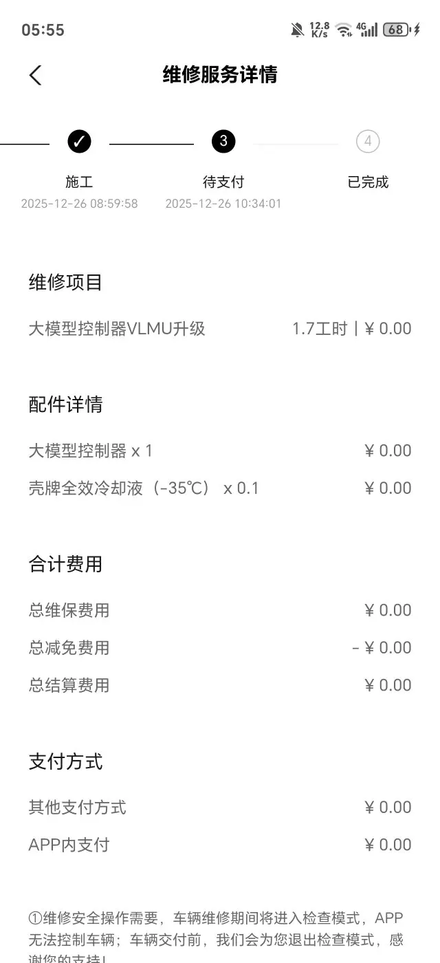 预约超方便,在小鹏APP上点几下就敲定了时间,到店后接待的小哥特别热情,很快就把车安排进车间了。最让我惊喜的是APP能实时看维修进度!手机上一目了然,再也不用反复追问,安心又省心~