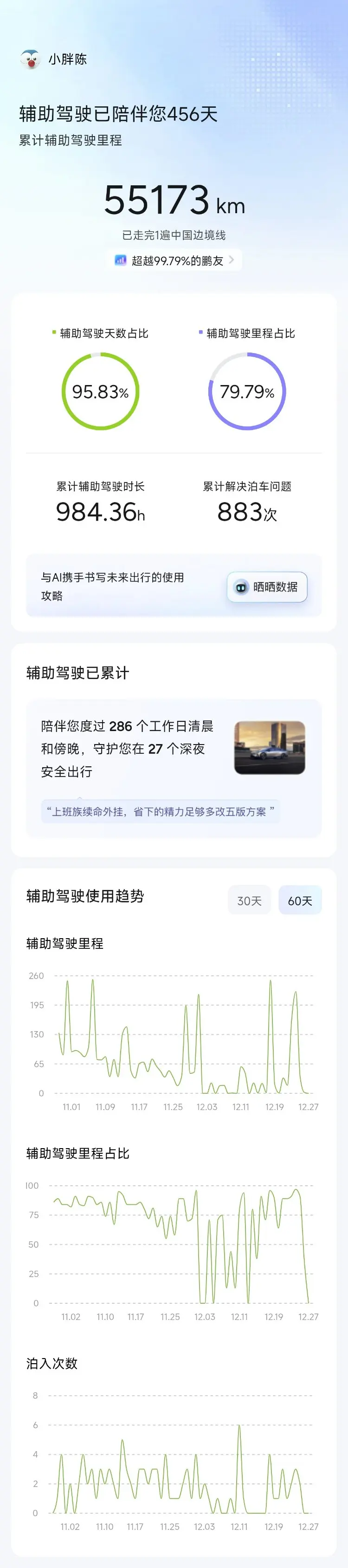 平时上下班通勤的我大部分开车时间会使用NGP,有些情景他驾驶的水平比我高。早上买上早点,上车后打开NGP边吃边看前方,小鹏NGP为我省下来了吃饭的时间,可以让我多懒会床。下班回家NGP继续启动,一天的工作,还是有些疲劳,让我不用这么累。