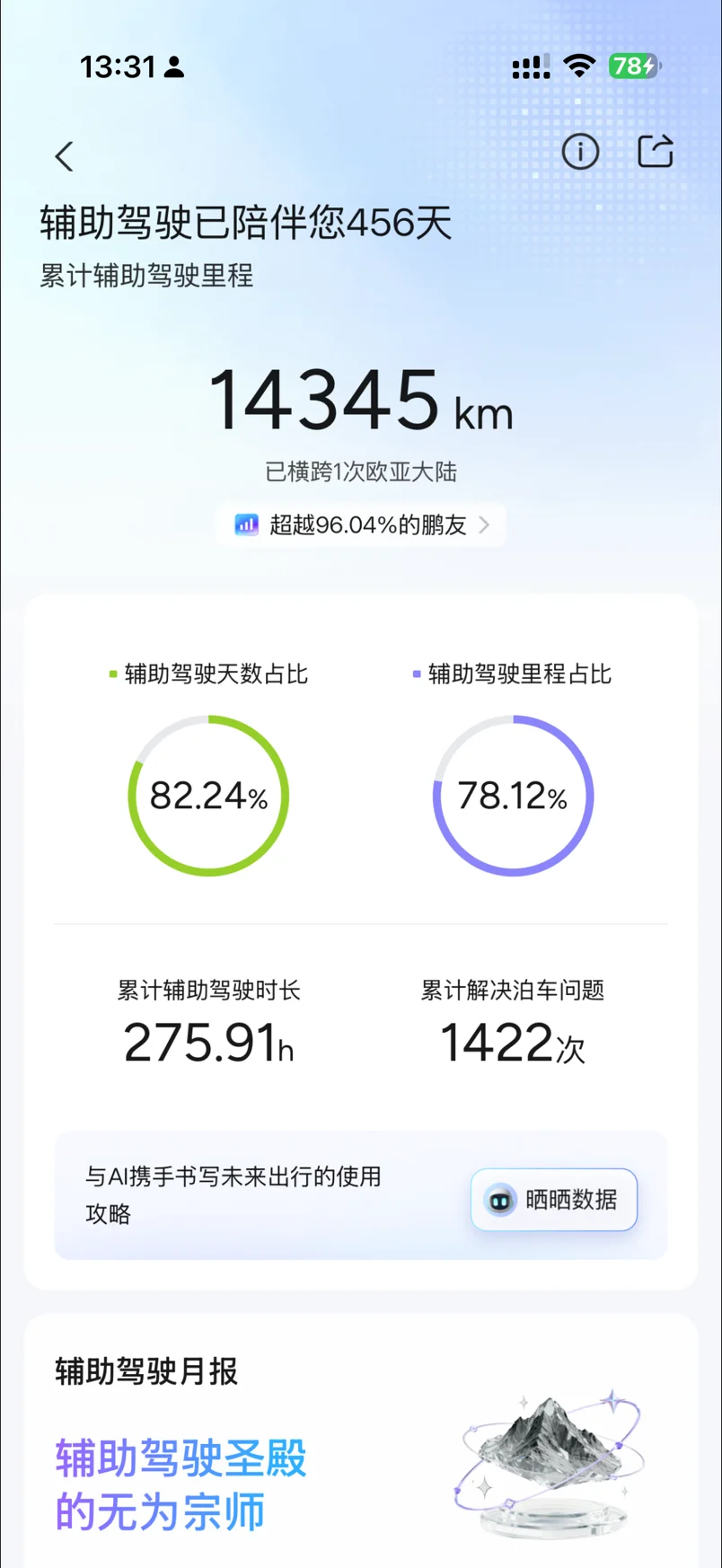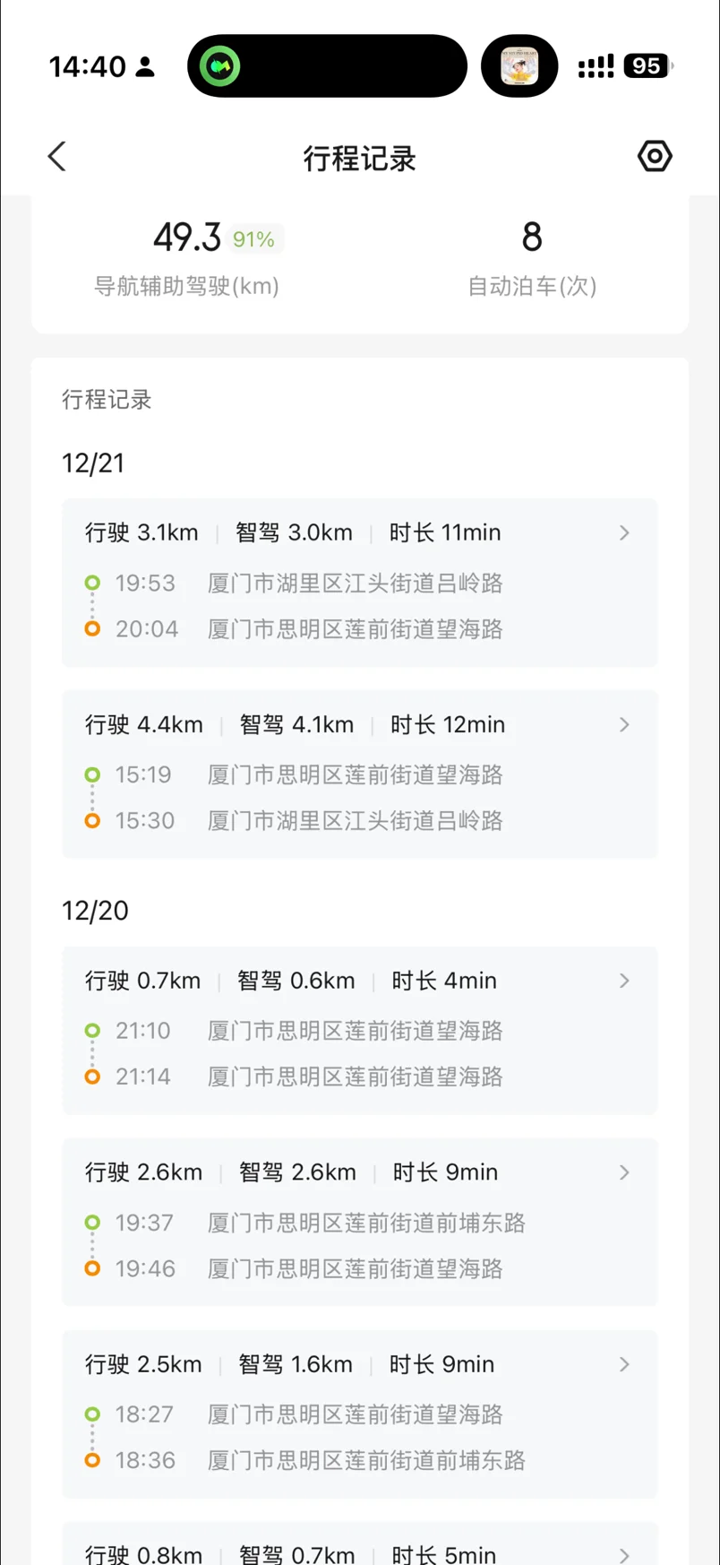 #小鹏汽车 #小鹏辅助驾驶更新新版本的车位到车位之后,智驾的比例大幅上升,只要开过一次后,就能自动识别开到车位。我住的地方和公司都在软件园区内,之前在园区内是没法使用智驾的,现在开过一次路线后,可以通过到车位的功能,起点和终点可以都在园区内,我上下班800米距离开车都用上了智驾,看我的截图,很多都是几百米的距离都用智驾,已经离不开智驾了。小鹏智驾是越来越好用了,让我现在觉得,在L4来之前,智驾就这样了,反正都要人看着,那目前智驾水平就到头可以了。