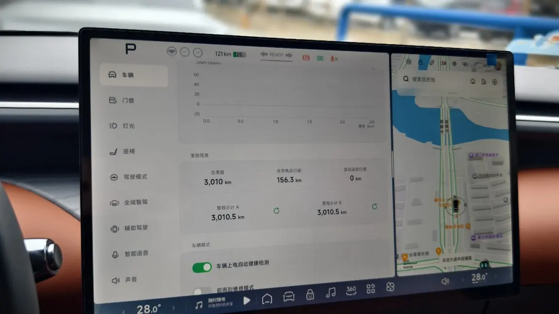 最直观的改变是用车成本的“断崖式”下降。以前开卡罗拉,市区通勤百公里油耗大概8升,每月油费至少600元,每5000公里一次小保养,换机油、滤芯的费用每次都要五百多。现在家里装了充电桩,利用谷电时段充电,一度电才三毛多,充满602长续航版的电池也就二十块左右,百公里电耗稳定在12kWh上下,三个月下来总电费还没以前一个月油费多。电车保养更是省心,三个月首保只做了电池健康检测和轮胎检查,花费不到200元,这笔账算下来实在太香了。