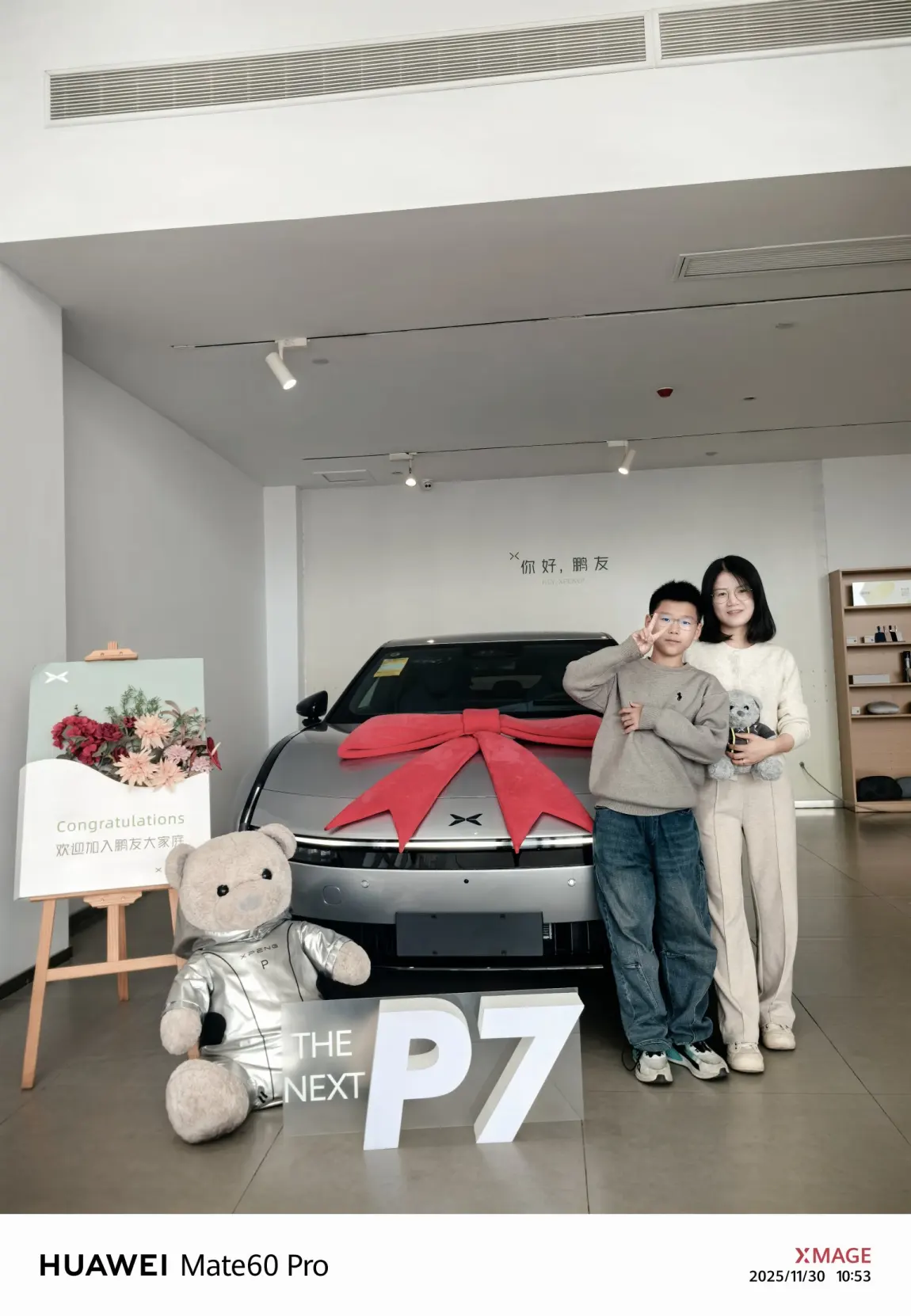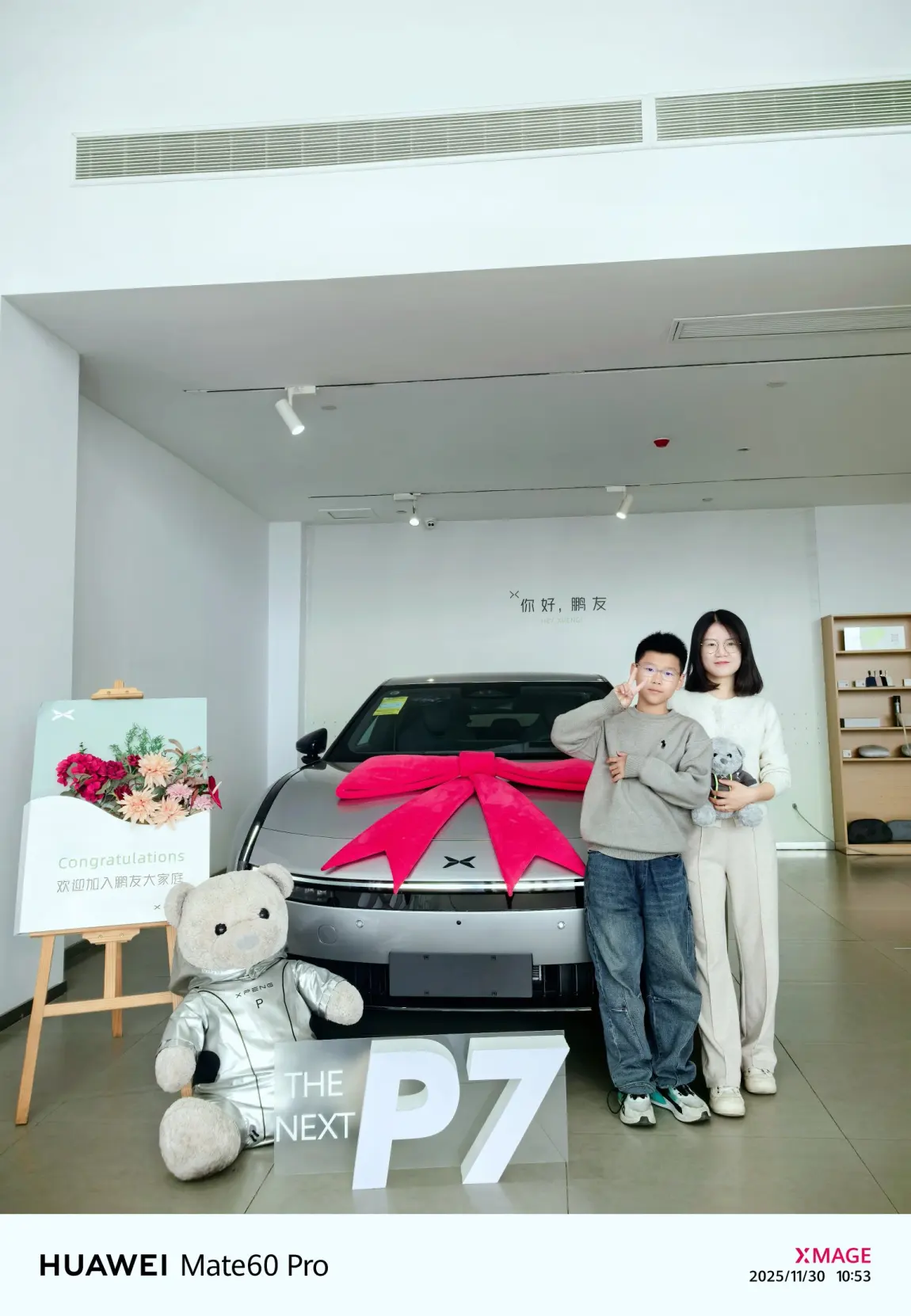 终于在2025年11月30号,迎来了我的小鹏P7!走进交付中心看到那抹亮眼的银灰色,搭配着喜庆的红丝带,瞬间觉得所有等待都值得了。