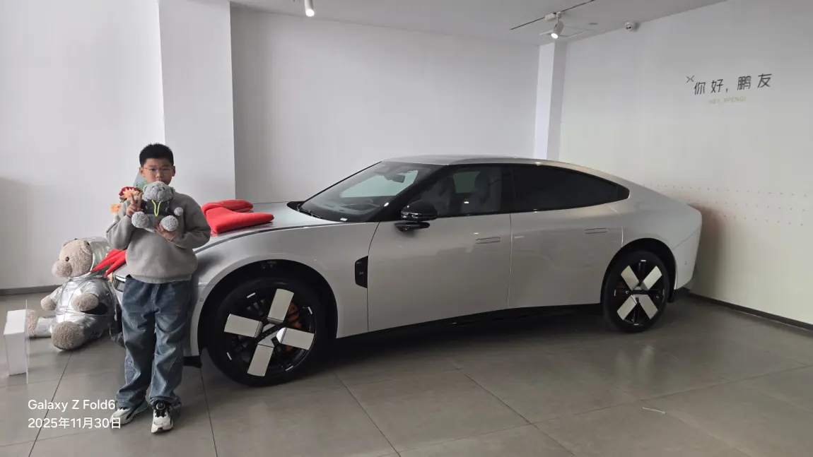 选车时对比了不少品牌,最终还是被小鹏P7的设计和智能配置打动。流畅的轿跑线条戳中审美,智能座舱和辅助驾驶的体验也让日常出行多了不少期待。提车这天带上孩子一起,小家伙比我还兴奋,对着镜头比耶的样子,也成了这份喜悦里最可爱的点缀。