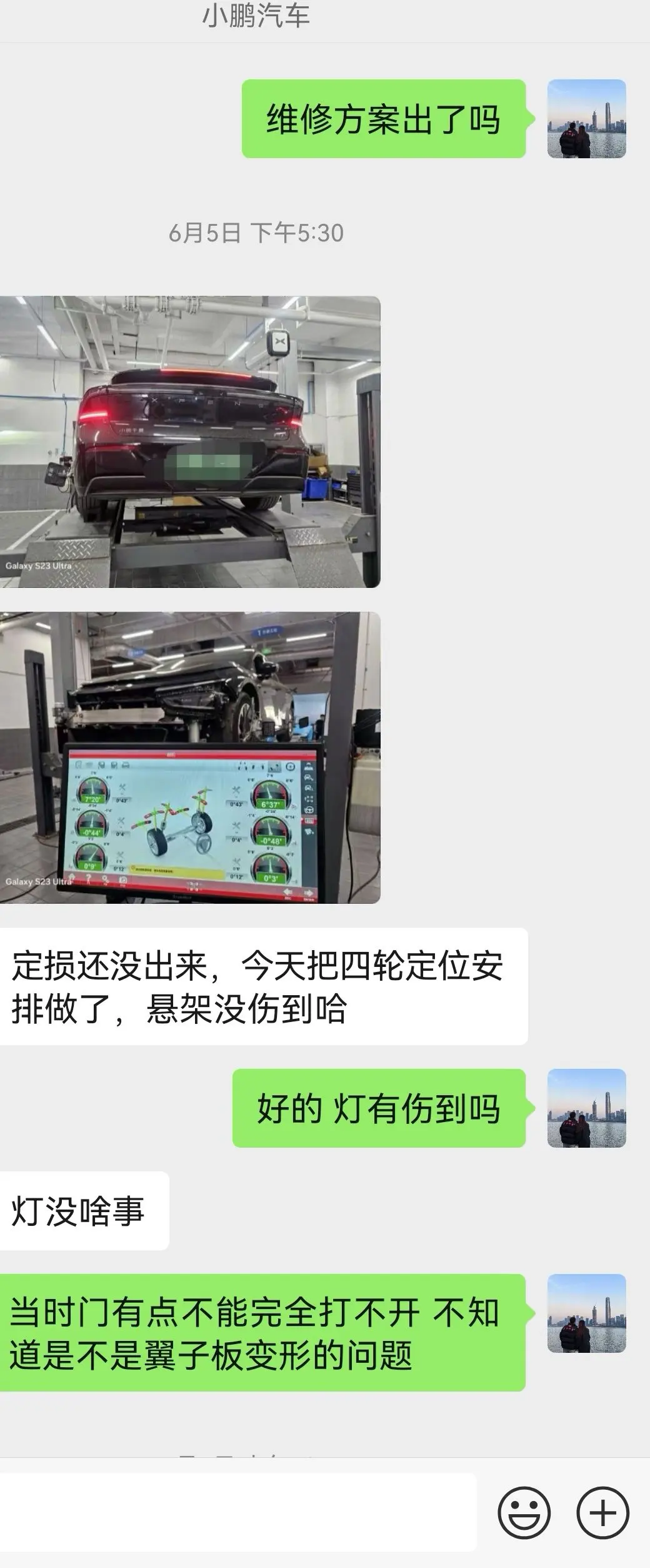 提车一年多,一共遇到两次事故,第一次是车在停车场被其他车蹭到了,晚上9点送到4S店售后部,龙阳大道小鹏晚上有人值班,有人接车,安排对接,这点很好。第二次是双车道我,我在左侧车道正常直行,右侧车道往左跨实线变道避让不及导致右前方撞车,全程保险4S协助知道对接,全程报告修车进度以及车况情况,真的很暖心,效率高,回复快,解决问题也快。