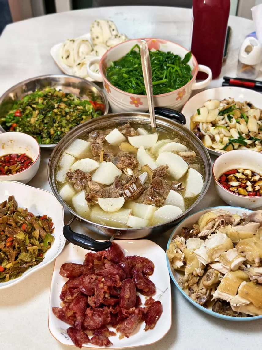 #冬至的最佳打开方式# 冬至这一天约上一群鹏友开启搬家式出游,小鹏的后备箱简直是宝藏空间!塞满了行李、手信还有给朋友们带的特产,愣是把后备箱的装载能力发挥到了极致。到了目的地,一排排小鹏车整整齐齐超有排面,晚上围坐在一起吃冬至家宴,萝卜炖骨汤暖乎乎的,白切鸡、腊肠都是熟悉的年味,和鹏友们围炉话家常,这才是冬至最暖心的打开方式~冬至大如年,有车有友有美食,幸福感直接拉满!