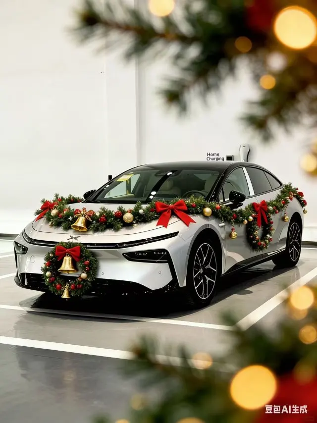 嘿嘿,diy一下才发现,小鹏的车很适合圣诞节氛围装扮啊,银色的车身很有科技感,和圣诞节的红色十分的契合,既温暖又满满的未来感,不错不错