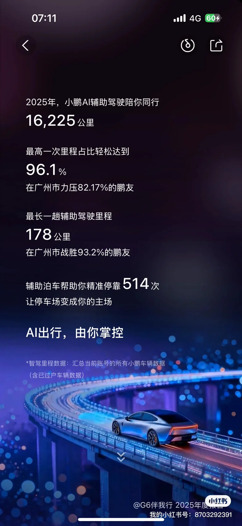 2025年,是即平凡又不平凡的一年37000+公里,G6陪伴我走过了每一个工作日,也陪伴我一路领略了广西、贵州的山山水水,更是见证了家人在一起出行的幸福时光科技,让生活更智能,NGP 帮了大忙,也让驾驶体验更加舒适。新的一年,让我们继续为梦想奋斗,向着美好的前方前行💪💪💪