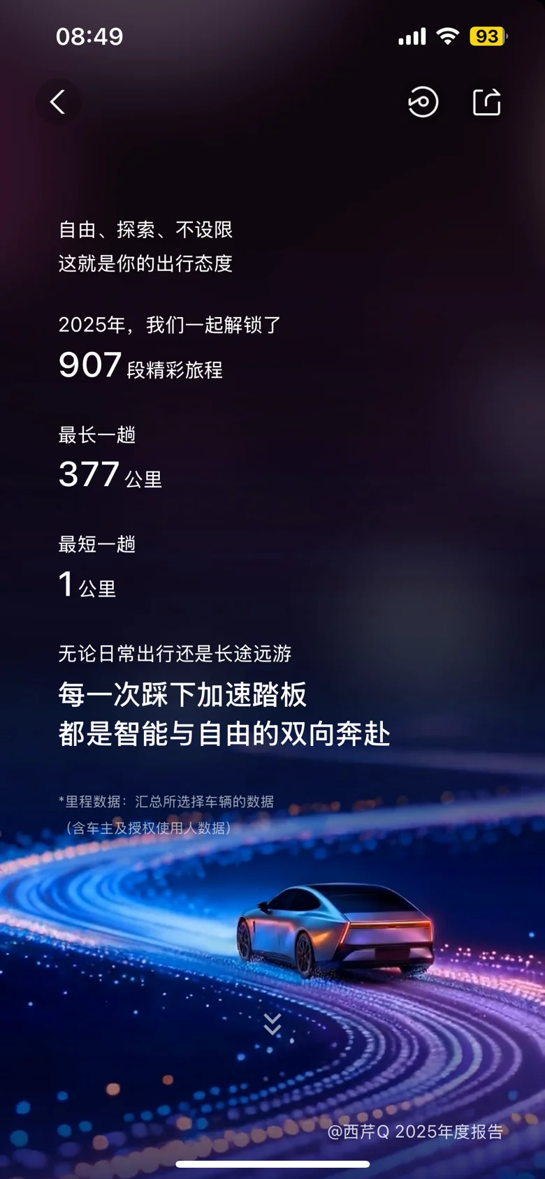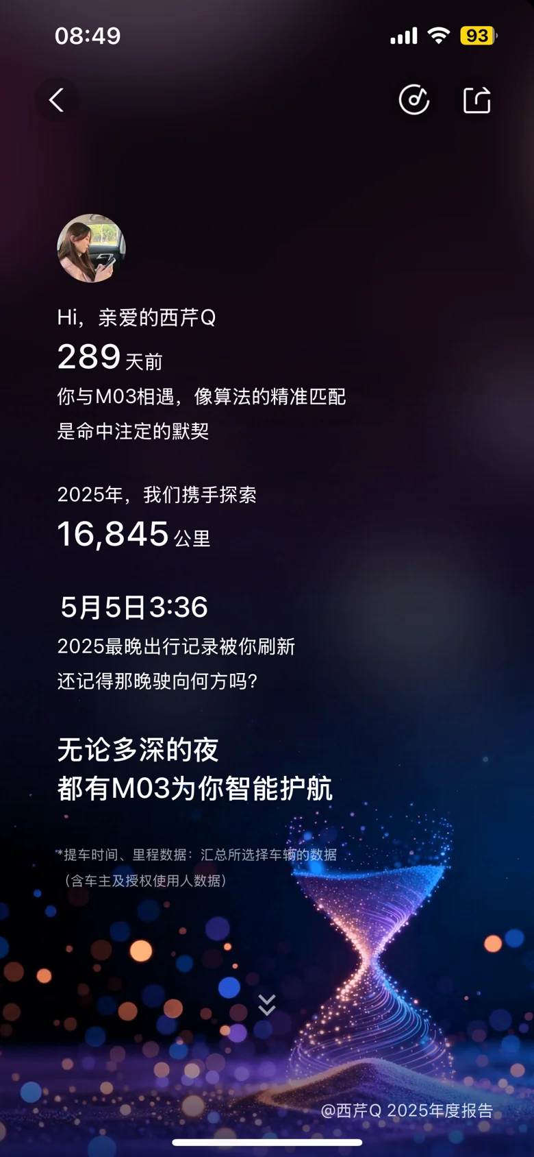 2025年与小鹏MONA 03相伴的289天里,我们一同行驶了16845公里,5月5日凌晨3点36分还留下了年度最晚出行的记录,深夜出行也有车辆智能护航,安全感拉满。充电方面,我在小鹏充电平台打卡2城10站,累计充电23次共1129.2度电,折算减碳相当于种下33.88棵树。无论是补能的便捷性,还是行车的智能化体验,这款车都让我觉得选对了。#小鹏汽车2025年度用车报告#