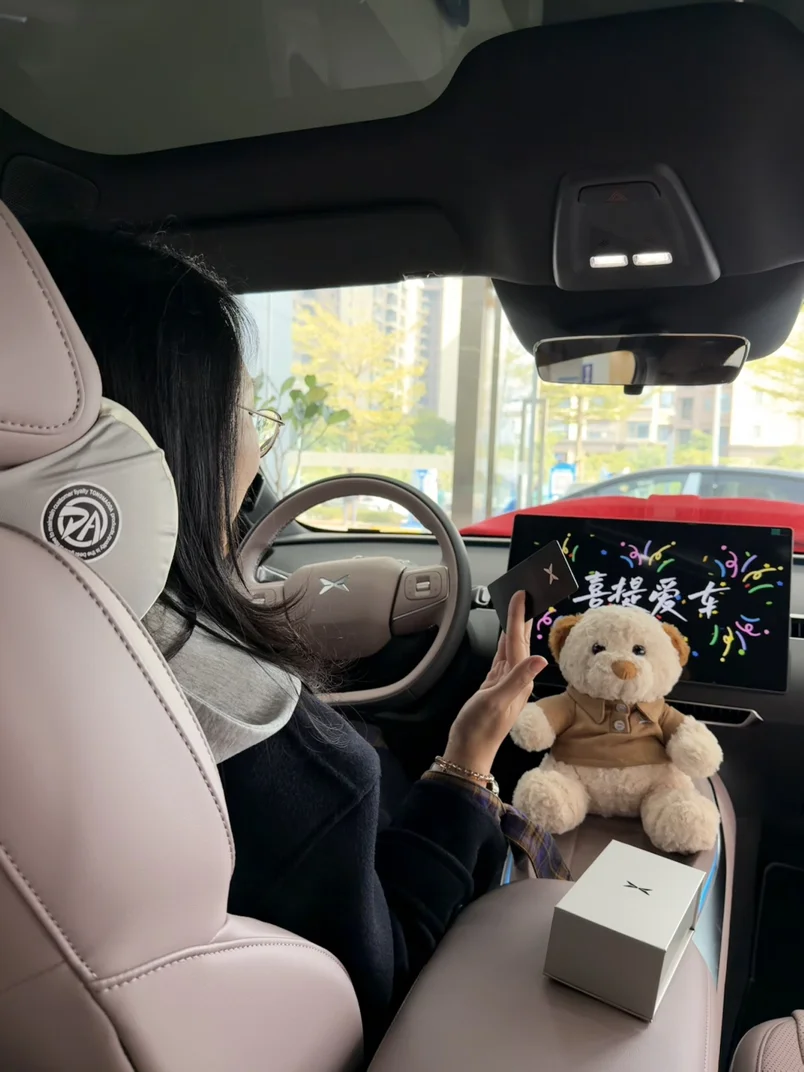 #我的提车作业# 喜提小鹏MONA 03!从订车到提车期待了两三天,见到实车有点小激动~颜值在线,线条流畅,开起来轻快又安静,智能配置也很贴心。以后它就是陪我探索城市的最佳伙伴了!选的是紫外紫内,实车比图片更惊艳,流线型车身搭配隐藏式门把手,科技感十足。最让我满意的是驾驶体验:起步平稳安静,加速响应很快。内饰简约但细节到位,中控大屏操作流畅,语音助手特别灵敏,动动嘴就能调温度、选导航。续航也扎实,充满电通勤让人拭目以待。以后周末可以开着小莫娜到处兜风了,期待解锁更多智能功能~