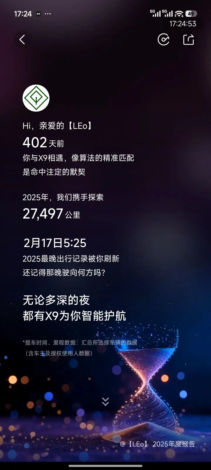 这一年的用车旅程里,最难忘的是超96%的智驾里程占比,让我真切感受到智能驾驶的成熟与便捷;196次超快充体验、10座城市的探索,以及X9持续的OTA升级,都让这台座驾不仅是出行工具,更是不断成长的“智能伙伴”。27497公里的里程里,每一次踩下加速踏板,都是智能与自由的双向奔赴。