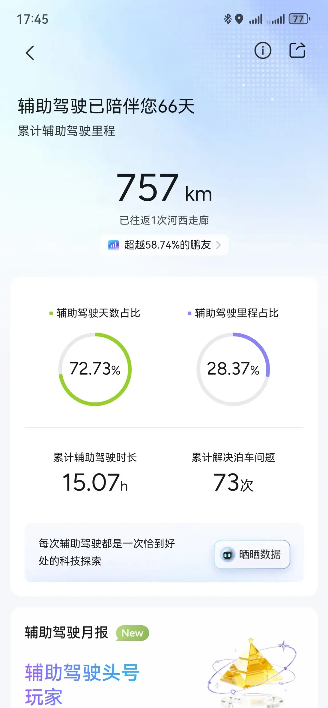 今天通勤再次依赖小鹏NGP,全程应对复杂的高架匝道和拥堵路段都表现得非常稳定!系统对加塞车辆的预判很及时,变道策略也足够果断,大大缓解了长时间驾驶的疲劳感。智驾通行证上的里程数字一点点增加,能直观感受到技术迭代带来的安心与便捷。期待未来解锁更多城市的城市NGP!