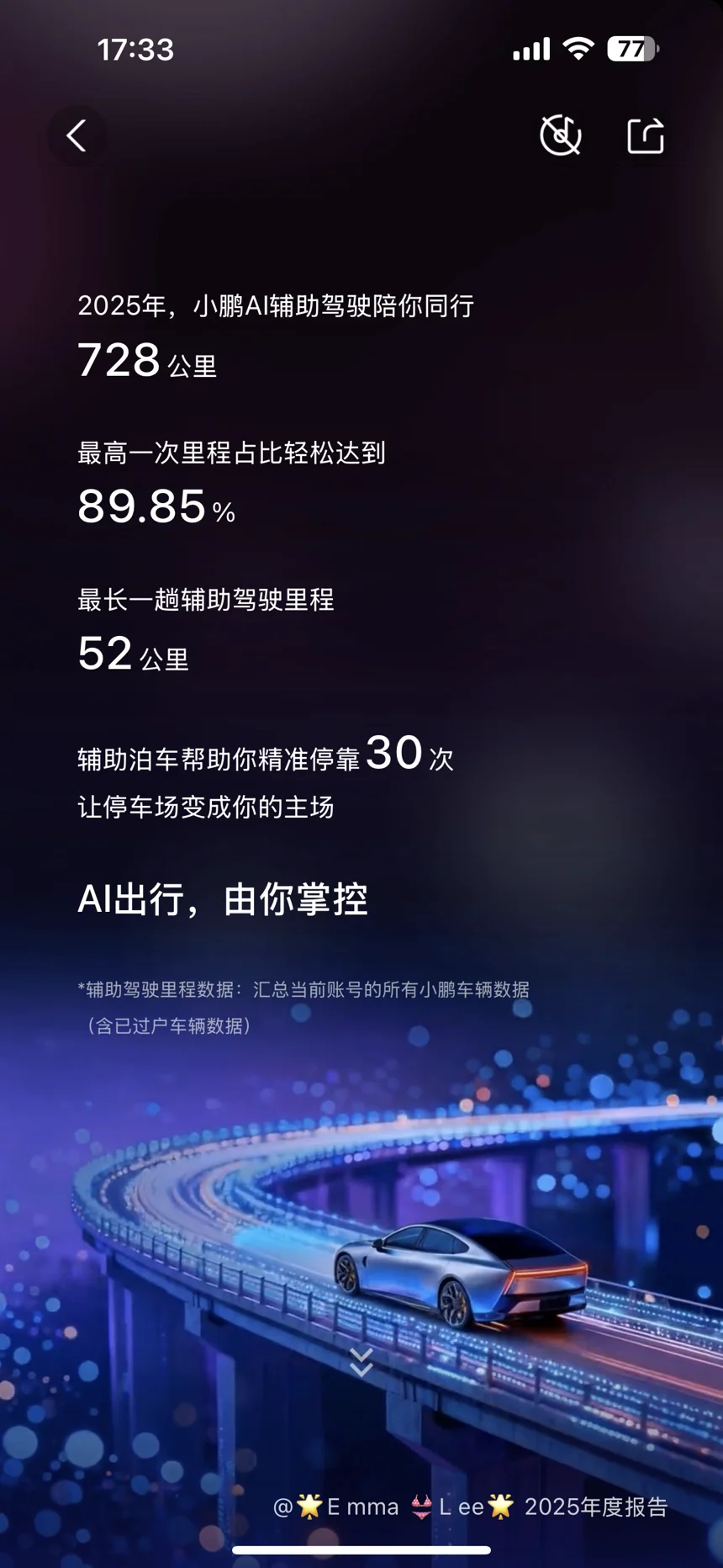 虽然战绩不够明显…但也不算差🤓,最喜欢就是NGP,功能杠杠的!试驾过几款智能汽车小鹏算是杠杠的😎这下实在太满意👍爱了😍爱了😍