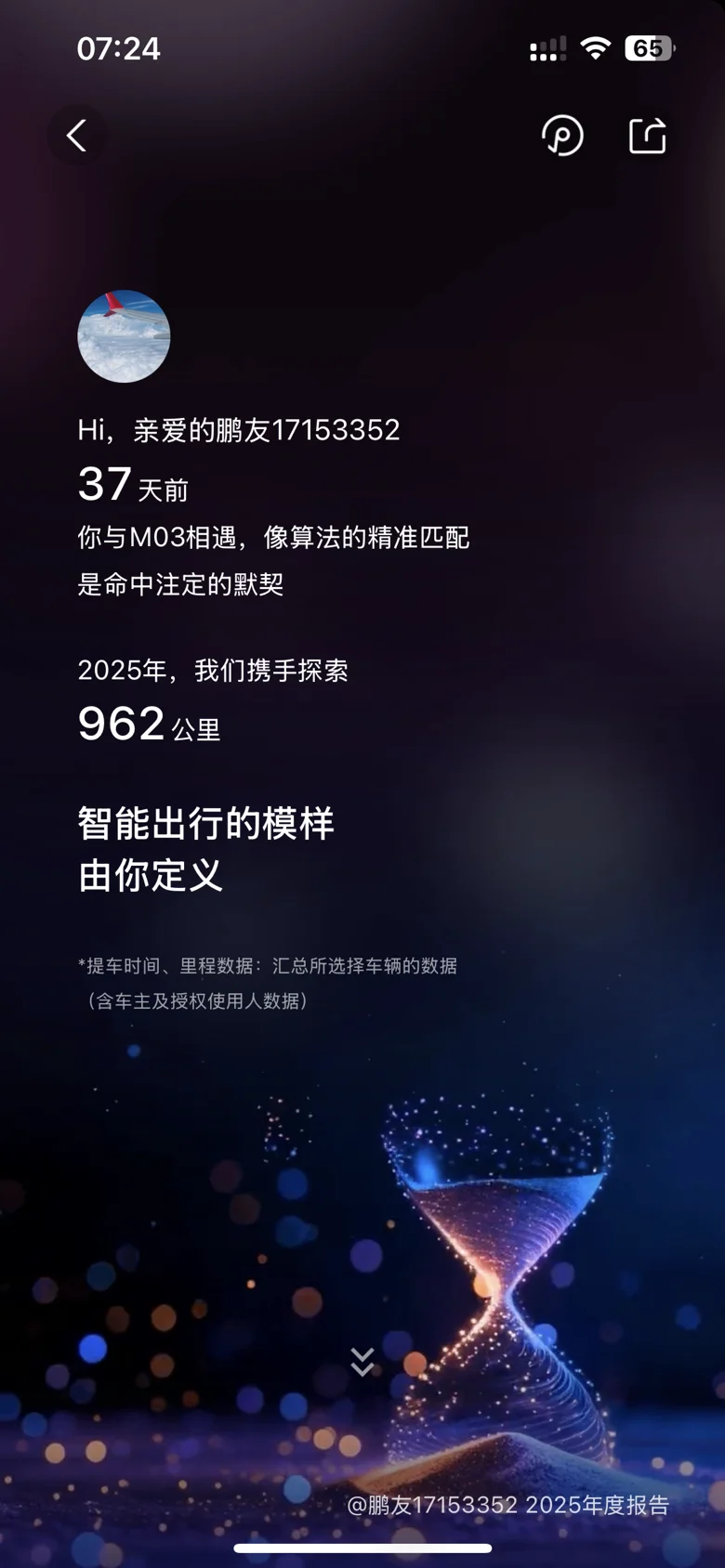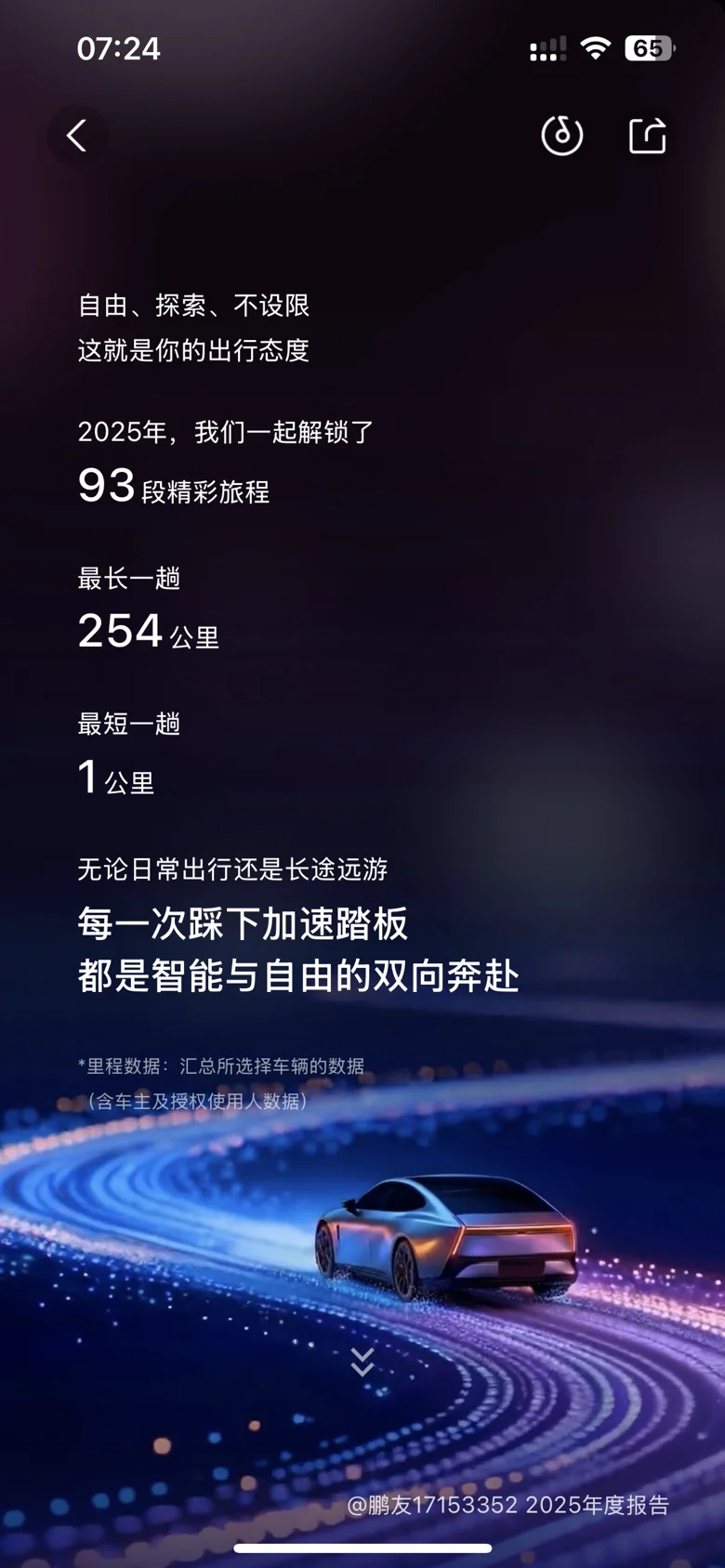 和小鹏M03相遇才37天,2025年就一起跑了962公里,解锁了93段旅程~最长一次高速开了254公里,每一段路都藏着智能出行的小美好✨