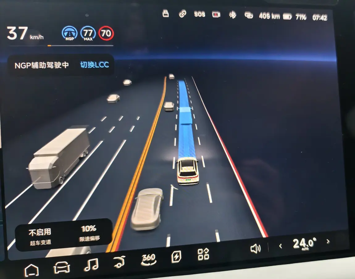 购车三年24款g9 智能驾驶功能使用起来很丝滑 经过多次ota升级 越用越丝滑 高速进出闸也能自动驶入驶出 非常高效