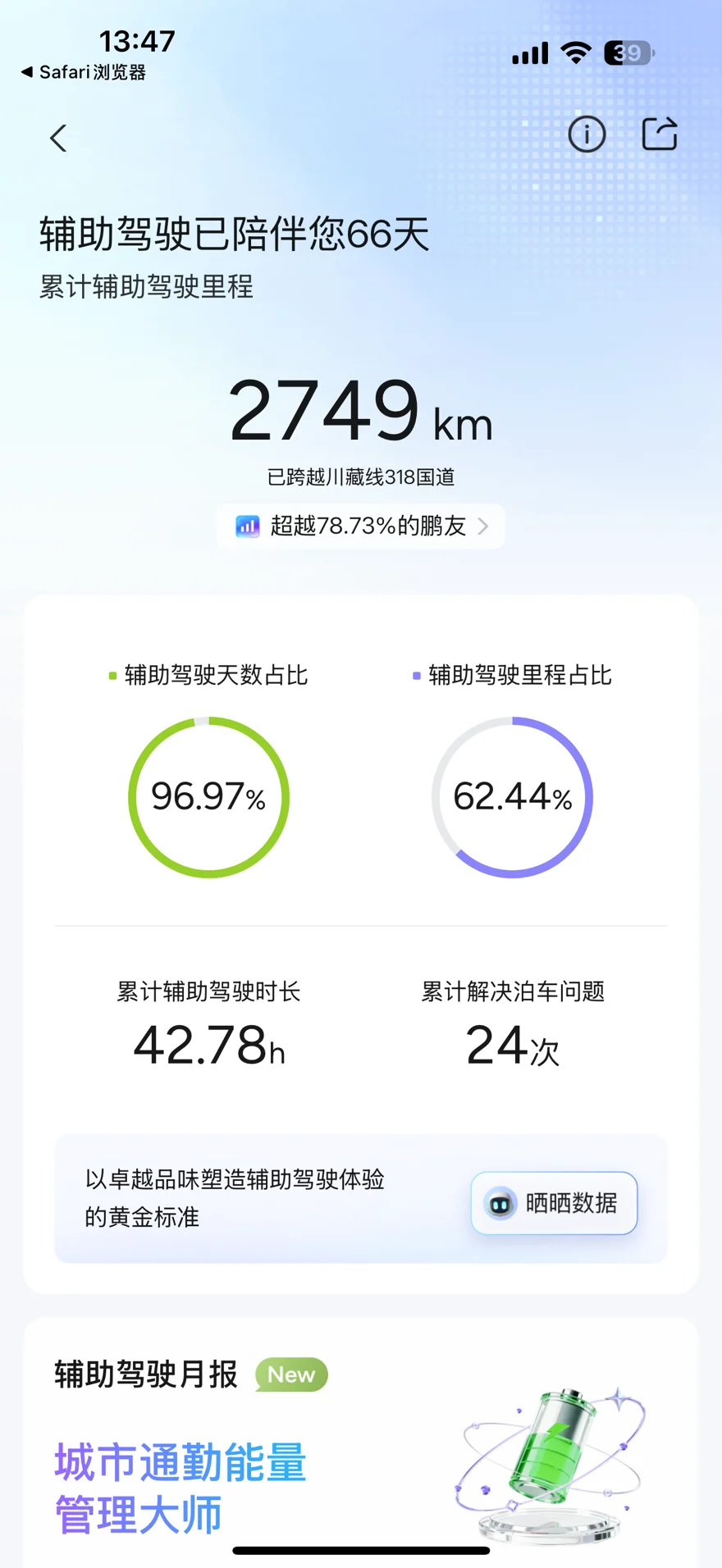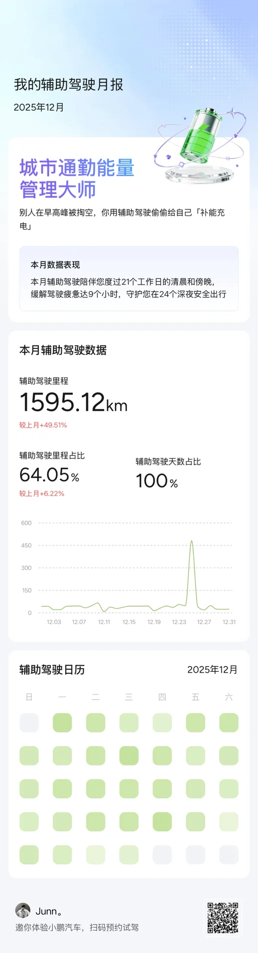 提车2个月,已经开了5千公里了,刚做完首保,差不多一半的时间都是在使用智驾,小鹏的智驾真的很好用,虽然现在不用激光雷达,但我感觉可以媲美激光雷达的智驾方案了,最重要一点,终身免费,智驾的第一梯队,真香👍👍👍