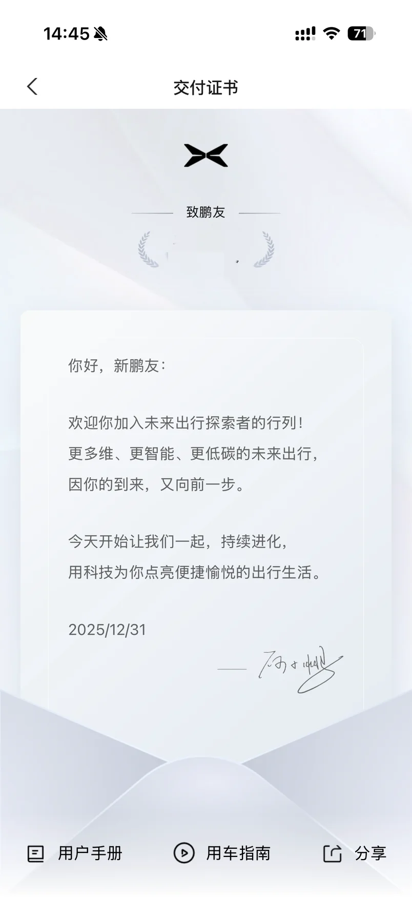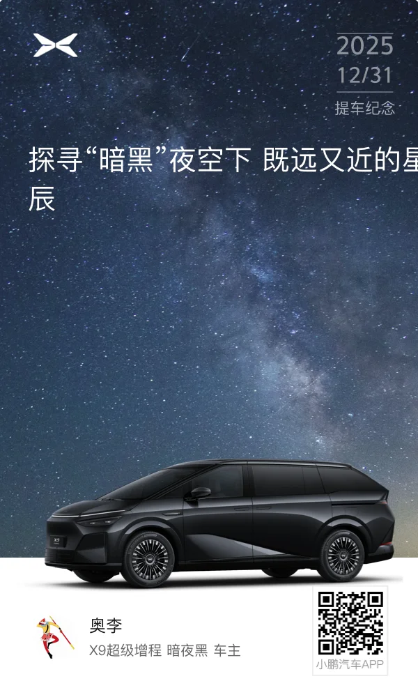 黑武士超级帅,11月28日锁单,12月28日通知交车,今天新年第一天到店提车,验车-交车-上保险-吃中饭-打临牌一条龙,早上九点半到交付中心,12点开车回家。nice🤪🤪🤪#小鹏汽车、#小鹏X9超级增程首批车主火热提车
