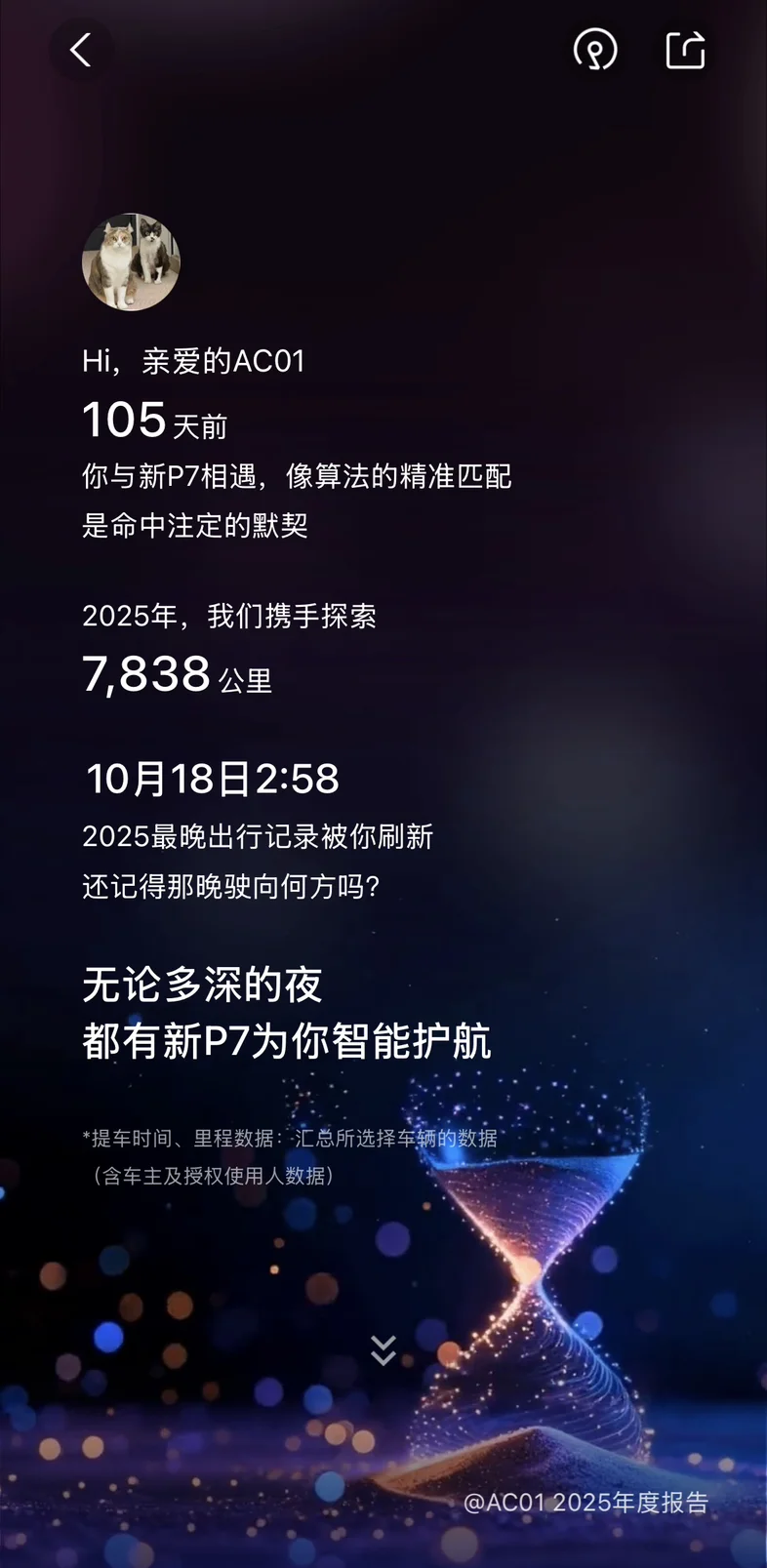 2025,感谢小鹏P7让每一段路都充满安心与惊喜。智能不仅藏在技术里,更融进了日常的陪伴中。2026,期待继续一起,走更远的路,见更多的风景。#小鹏汽车 #小鹏p7 #2025小鹏智能用车报告 #2025怪不一样