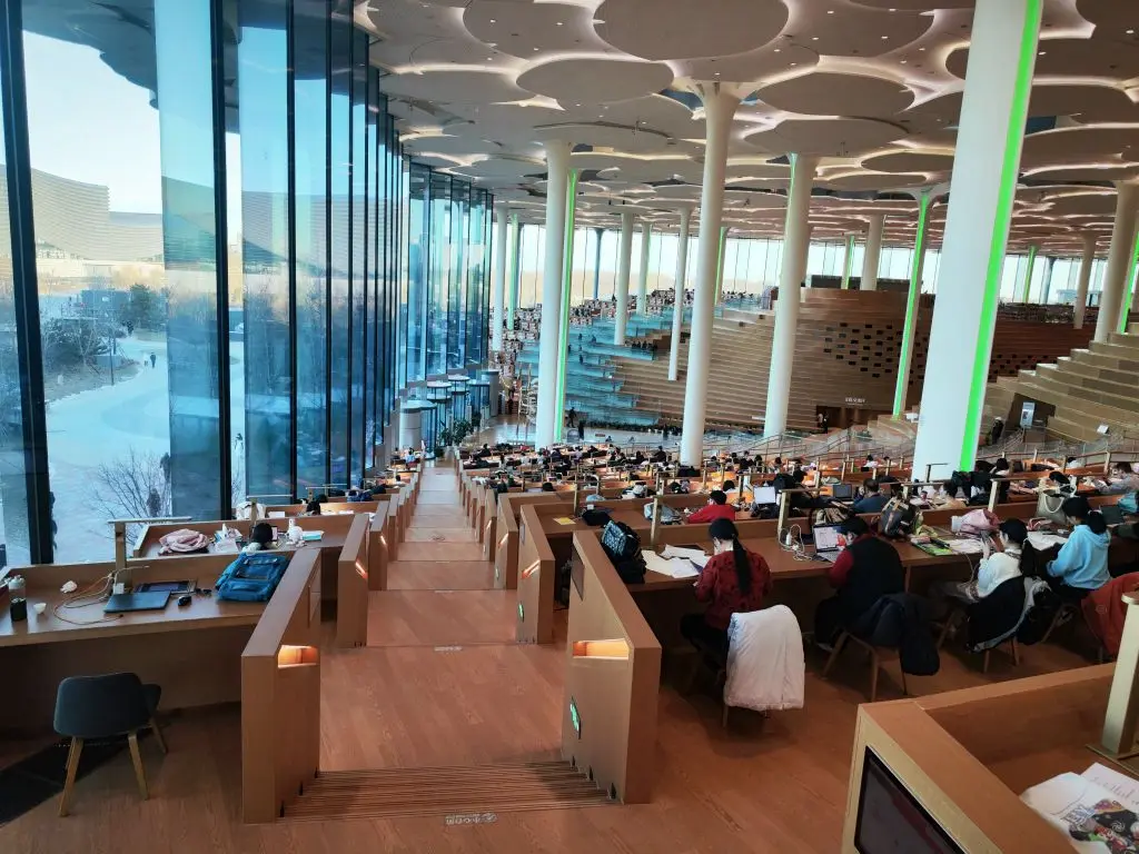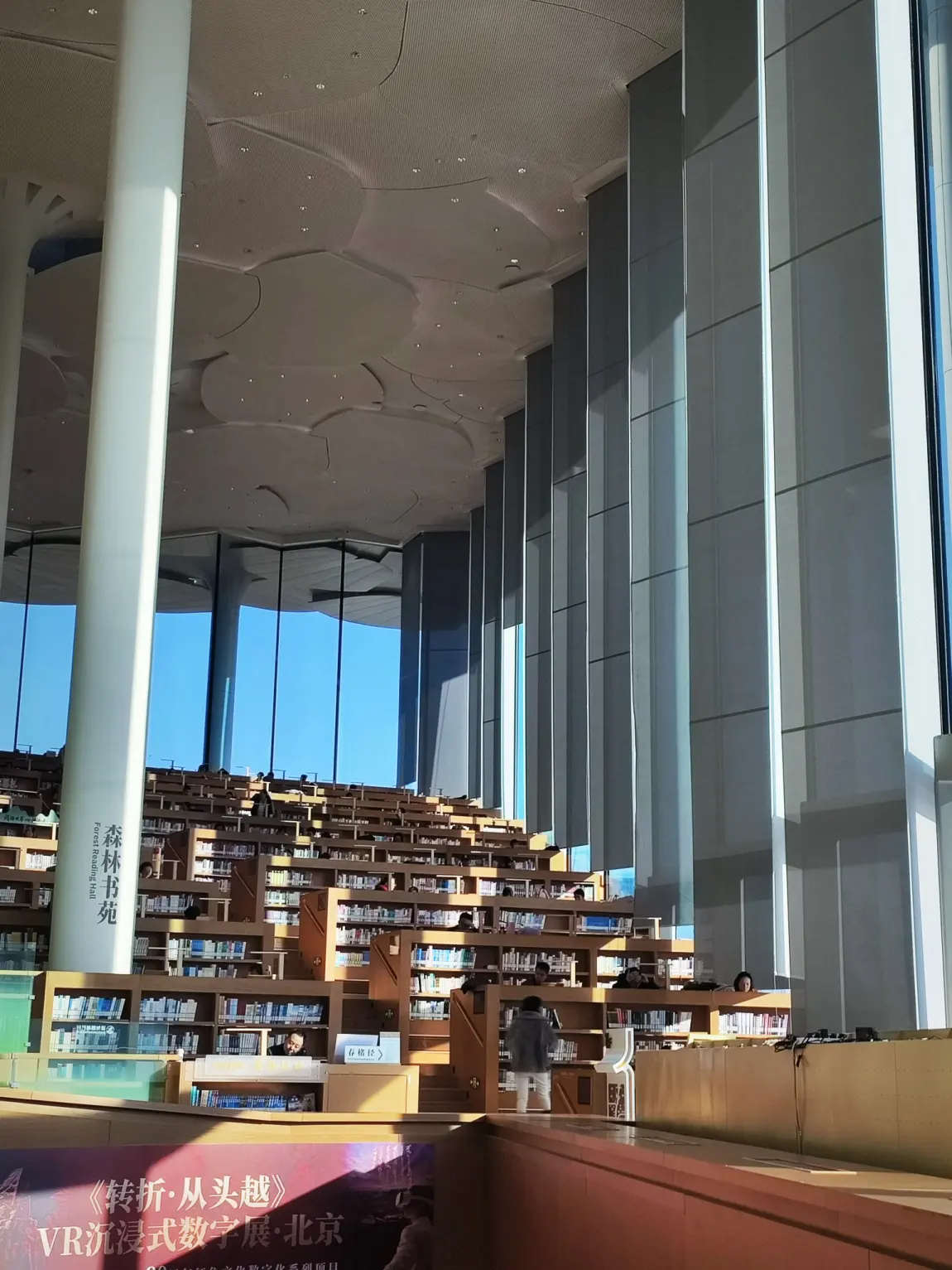 用餐区就在旁边,很方便。吃完直奔图书馆。里面很大,很有设计感,简约而不简单,找书非常方便。很多人在里面学习,很有气氛。分为几个区域,很多元化,有儿童区、文艺区、非遗区等,目前有hello beijing摄影展,还不错。此外还有元宇宙和光影剧场可以互动体验,挺新鲜的。
