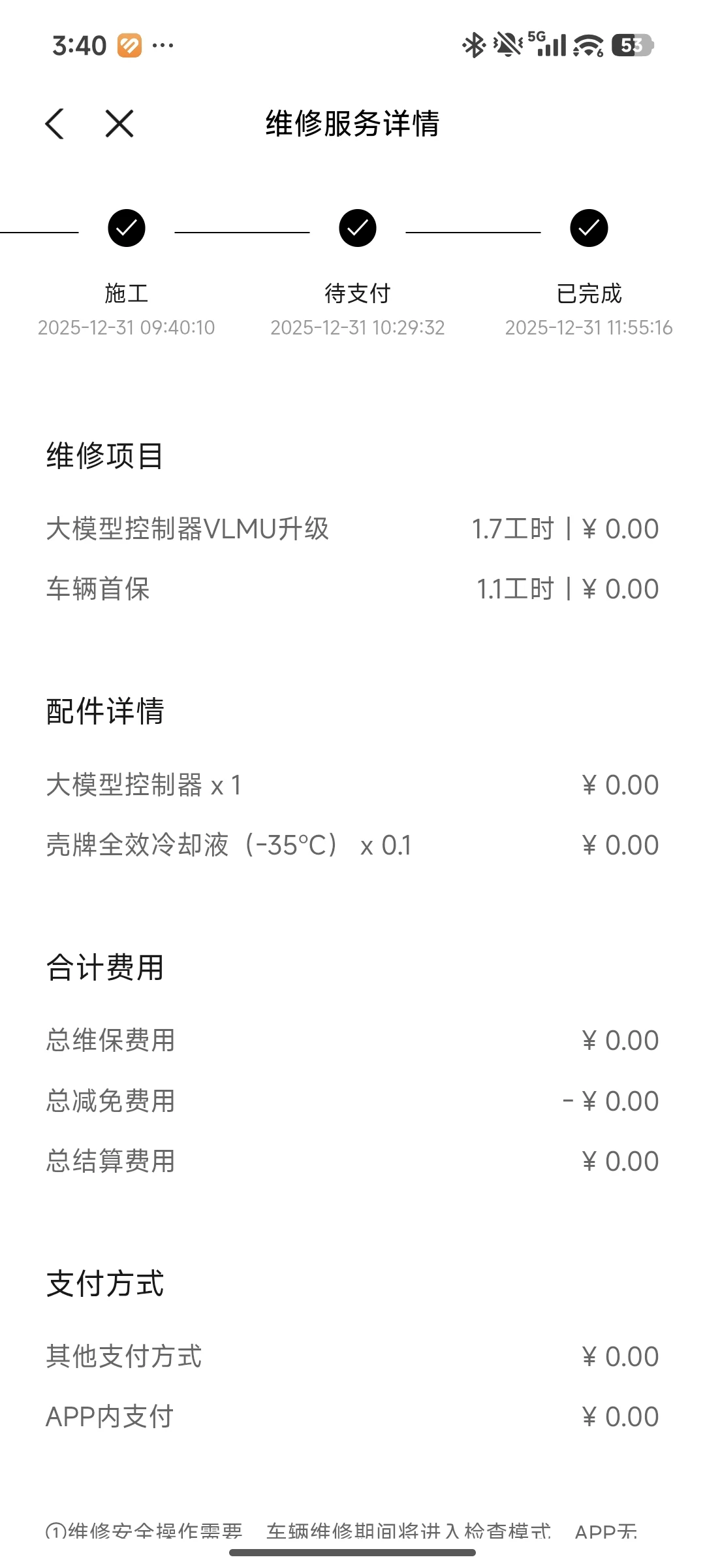 不到12点就完成了,车辆首保、图灵芯片上车安装、调试,洗车,非常专业高效,👍🏻赞。