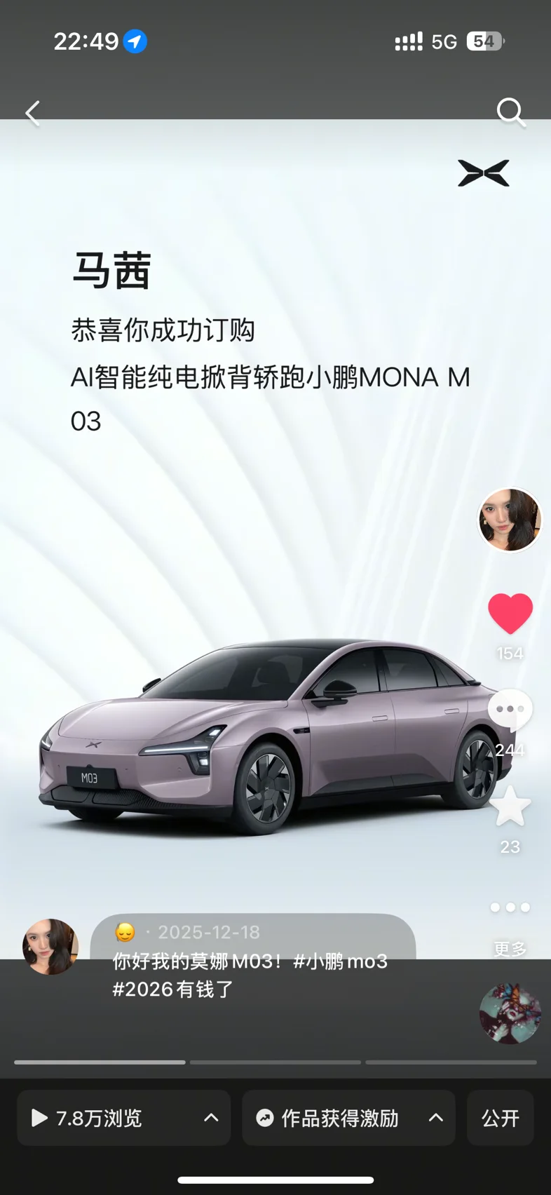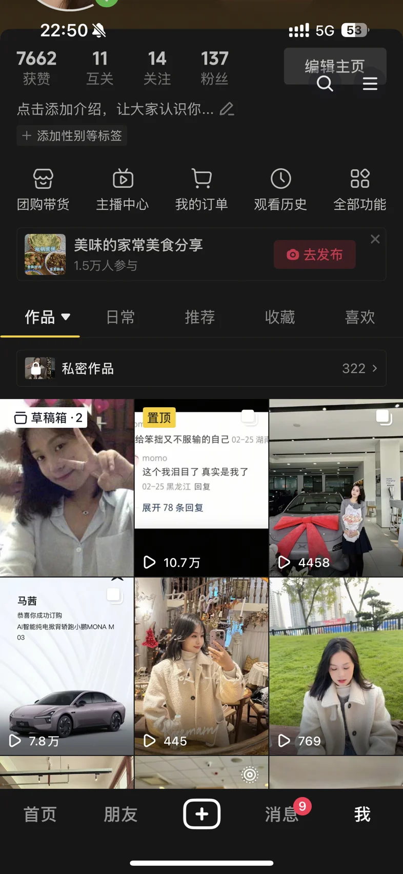 提车发了两个作品,其中一个作品有7.3万播放量,一个有4万多