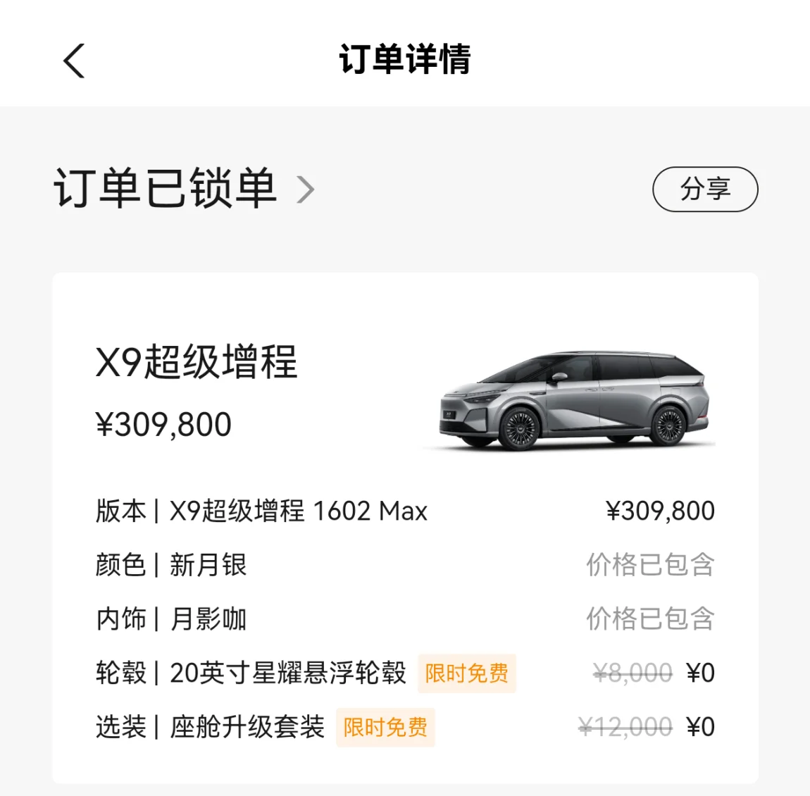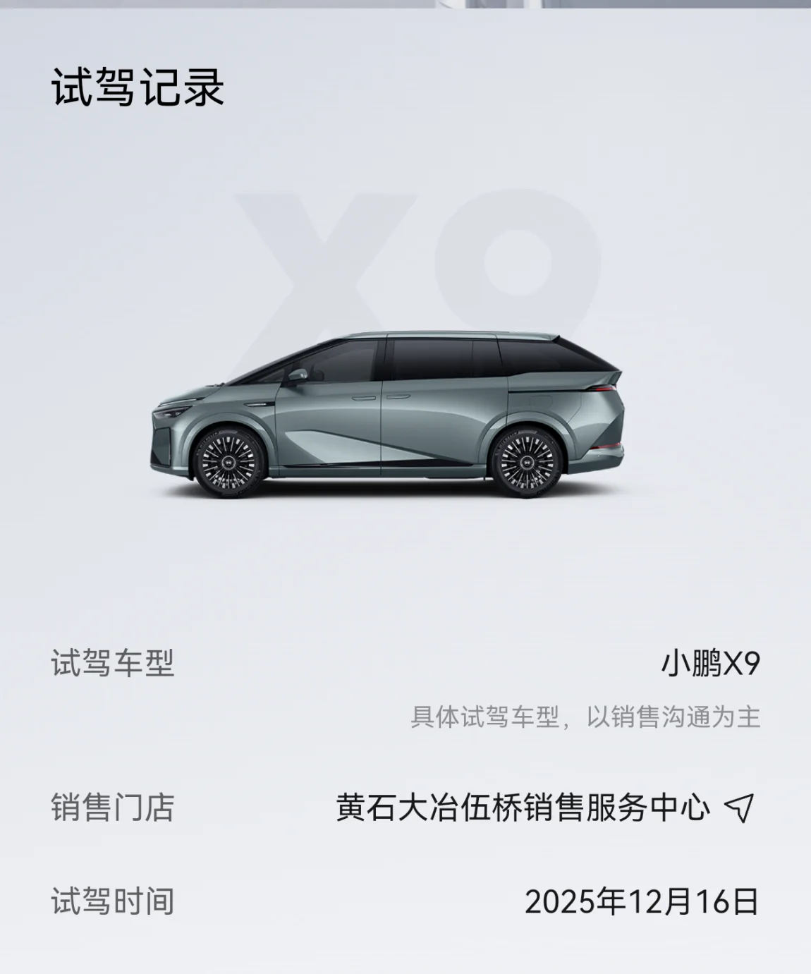12月16日锁单,坐等提车,好期待哦,15日看到X9增程版宣传视频,16日就约了试驾,当晚就锁单了,这个速度我自己也是服了!