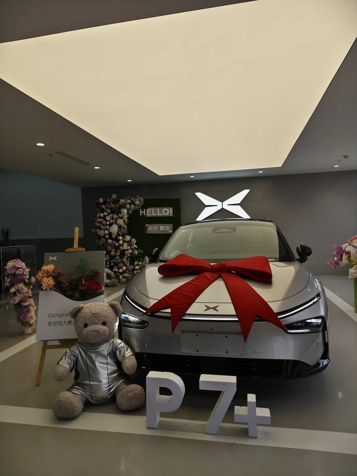 终于提车小鹏P7+啦!第一眼就被它的流线型外观戳中,银灰色车身质感拉满,超大的红色蝴蝶结仪式感直接拉满。坐进车内,智能座舱的交互特别丝滑,空间也比想象中宽敞太多。选它不仅是因为颜值,更看中小鹏的智驾系统和续航表现,试驾时就觉得操控超顺手。提车现场的布置也超用心。从此开启和小鹏P7+的出行新旅程,期待每一次出发!