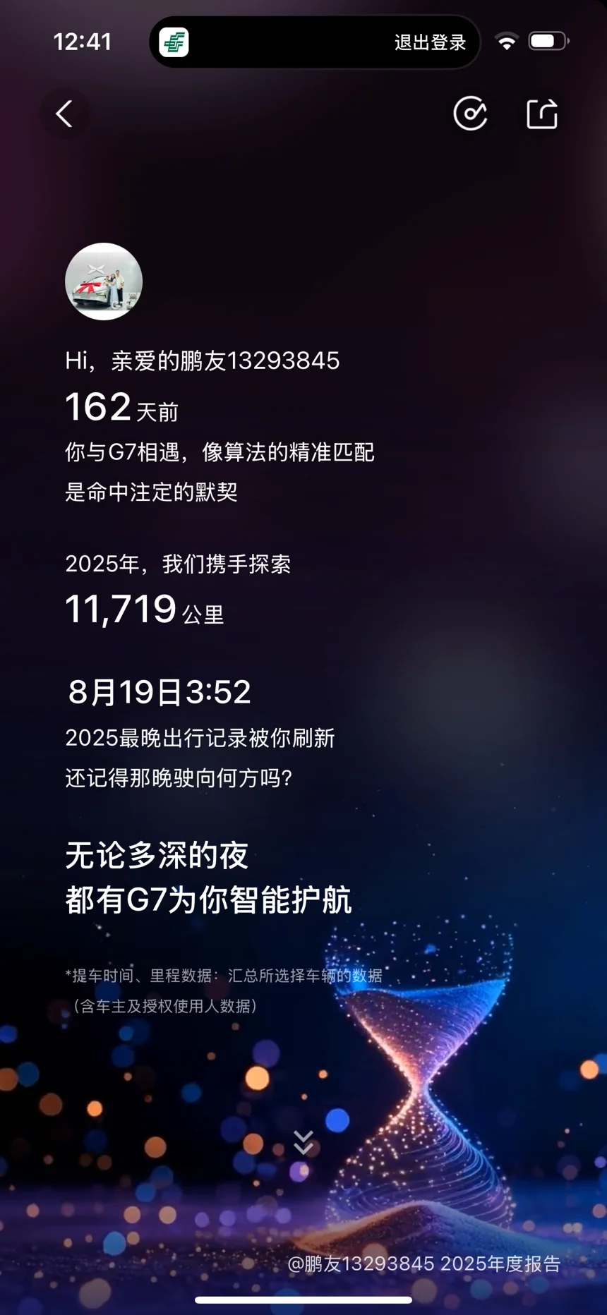 - 这一年,小P陪我跑了11179公里,我的最佳旅伴!- 我的年度报告绝了!- 小鹏G7年度用车成本大揭秘- 看完我的年度能耗报告,我沉默了……- 打工人的年度报告:通勤里程绕地球X圈,但幸福指数满分!- 宝妈带娃神器!年度报告显示,90%的里程都在奔赴游乐场和兴趣班- 谁说电车不能远行?我的足迹地图,从南到北画了个心形- 猜猜我这一年,在车上听了多少遍《向云端》?- 提车时VS一年后,我的车和我的生活都变了……- 闺蜜看了我的年度用车报告,非要和我换车开!- 谢谢你,陪我度过了欢乐的一整年