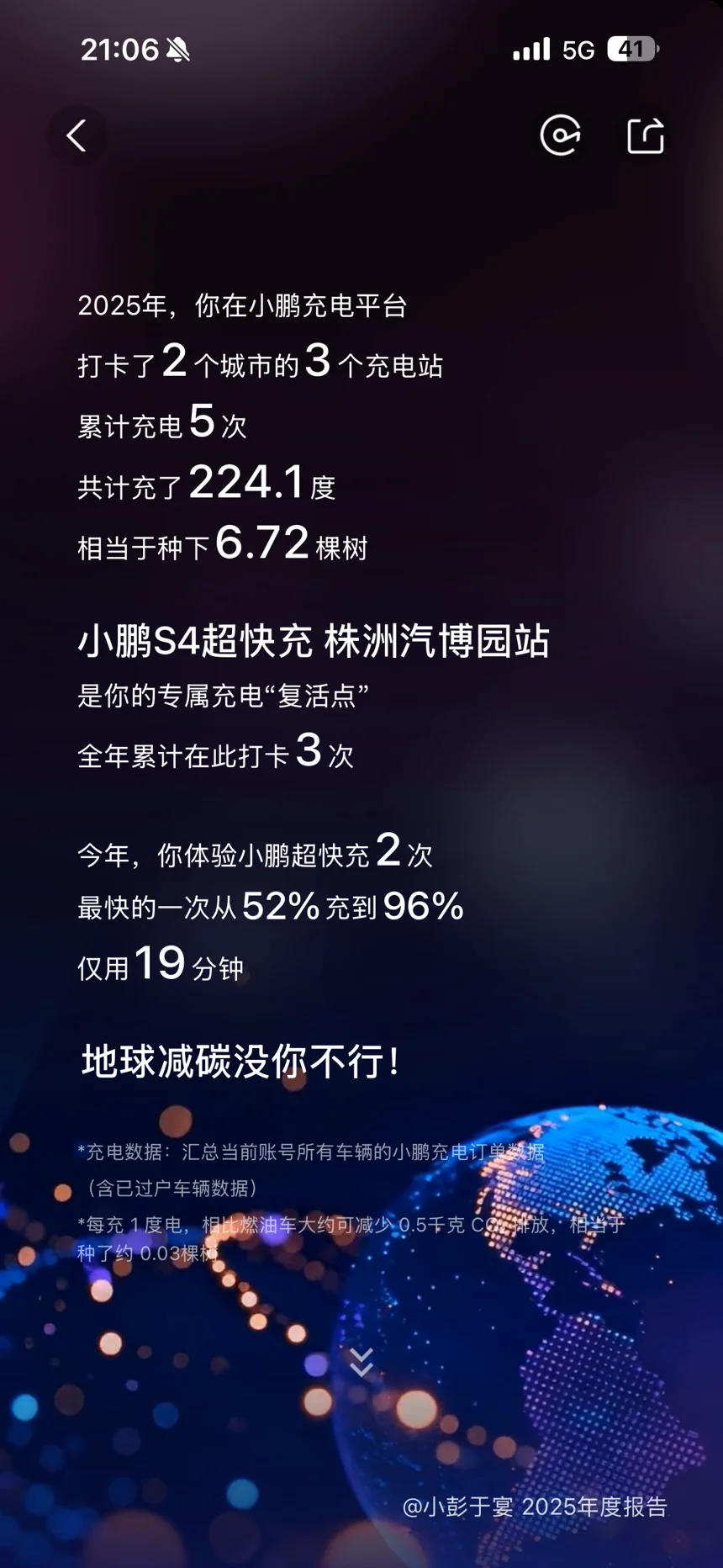 更没想到和小P的互动居然有850次,导航、点歌、调空调动动嘴就搞定,358次语音操作让开车全程不用分心。充电体验也超惊喜,打卡2个城市的3个充电站,超快充19分钟就从52%充到96%,等电的功夫喝杯咖啡刚好,还为地球减碳种了6.72棵树🌳