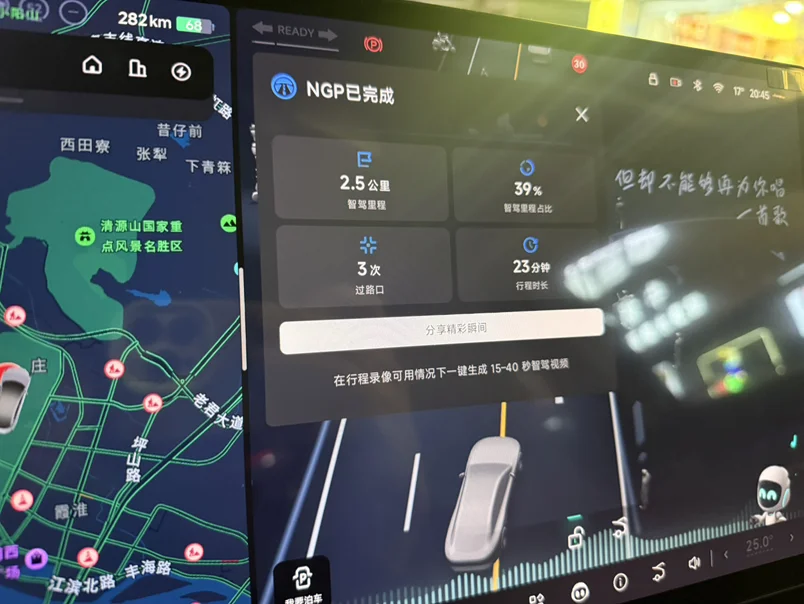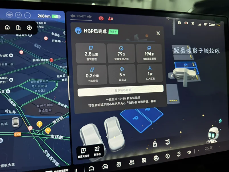 智驾绝对是年度惊喜TOP1!双NVIDIA DRIVE Orin芯片加持的XNGP系统太靠谱,全年智驾使用率高达88%,早晚高峰拥堵跟车、无保护左转、高速变道超车全搞定,甚至窄路会车和刁钻车位的自动泊车都丝滑拿捏,超高清车感SR能识别50多种道路参与物,雨夜开车也安全感拉满。最惊艳的是“人机共驾”模式,偶尔手动干预时衔接毫无顿挫,新手也能轻松驾驭。