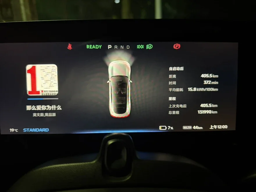 P7仪表盘上显示WLTP电量剩余44公里。出发前电量是575公里。所以一共消耗WLTP续航531公里。续航达成率在七六折。能耗方面在15.8kWh/100km。整体算下来,续航达成率和能耗都在可控范围内,毕竟是400多公里的行程,并且是满载的情况下。
