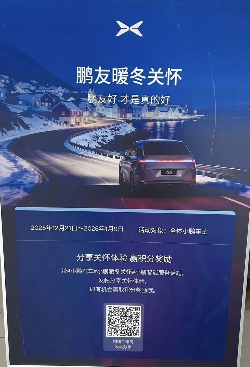 从智能座舱一键即达的暖意,到售后检测无微不至的守护,小鹏的暖冬关怀,就藏在每一个用车的细微之处。这个冬天,有它一路相伴,每一次的启程与归家,都满是踏实的安心