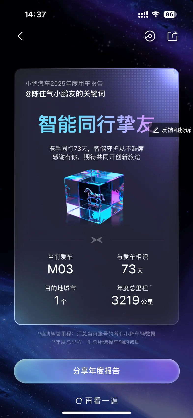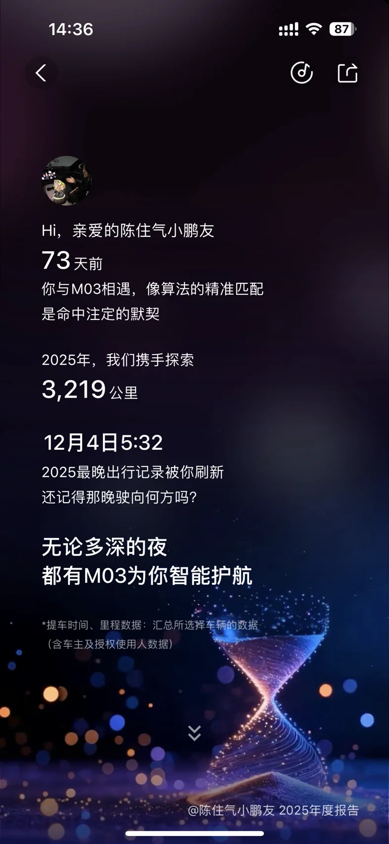 小鹏M03年度总结✨11月份开始3219公里,全靠我的“通勤搭子”小鹏M03撑住!600km续航超扎实,工作日通勤一周充一次电就行,谷电成本低到离谱~ L2辅助驾驶是早晚高峰救星,自动跟车超丝滑,解放双手不费腰!语音控制反应超快,调空调、切歌动动嘴就搞定,车机从不卡顿。掀背尾门超能装,下班买的菜和快递轻松塞下~第一次一个人开高速 全程用自动驾驶 ,太爽了 再也不用担心害怕一个人上高速了十万级电车有这智能和实用性 ,真的爱了😍 #小鹏汽车、#小鹏MONA、#2025小鹏智能用车报告