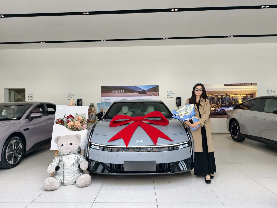 在交付中心,车系着大红蝴蝶结,仪式感足。专员帮忙拍了人车合影,并指导我检查车辆。首次通电时,中控屏转向我打招呼,感觉很特别。开走的第一感受是安静,底盘滤震好,动力顺滑。