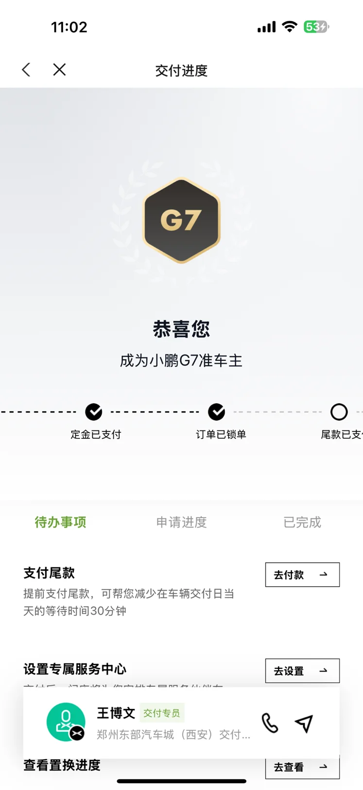 #晒小鹏G7大定# 恭喜提车,小鹏G7空间大,低能耗,超智驾,你值得。小鹏G7搭载图灵芯片,算力拉满。5c超充,ai底盘,ai电池,超大空间,不错的选择!祝愿小鹏汽车在未来的征程中一路披荆斩棘,不断突破创新,推出更多高品质、高性能的车型,赢得更多消费者的认可与喜爱,发展越来越好!@鹏友俱乐部小向导