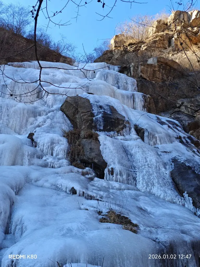 #新年首次出行# 三天小长假也是可以在附近转一转的,和媳妇一商量后说走就走,临时准备了吃的喝的就打开了两步路,开着我的g7出发,目的地藤萝谷冰瀑,一路上电耗在17-18个,娃一直在后排看电影。到了爬两个多小时就能看见冰瀑了,实在是壮美,远远的在丛林中就能看见,带着孩子就没走环线了,在山顶吃饭后就返回了。