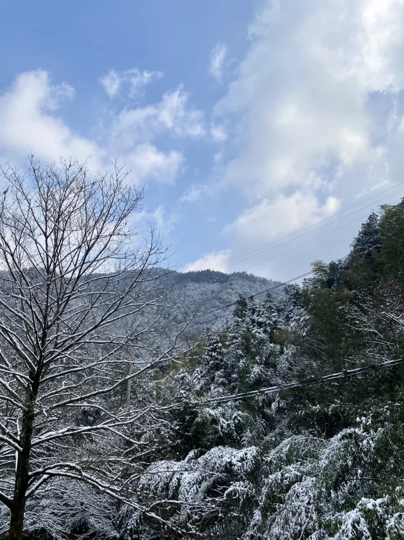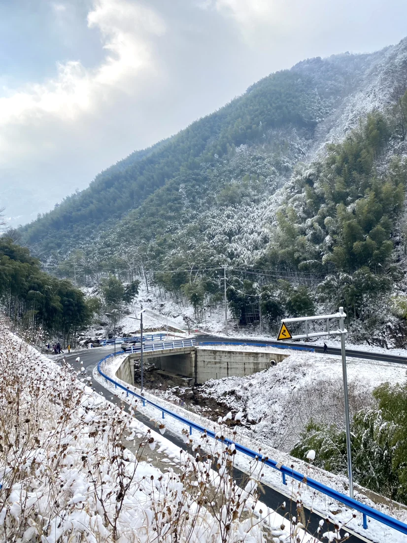 雪山真美,但是路面很滑,我们只开车到山脚下,交警拦住啦,走上去10几公里😜