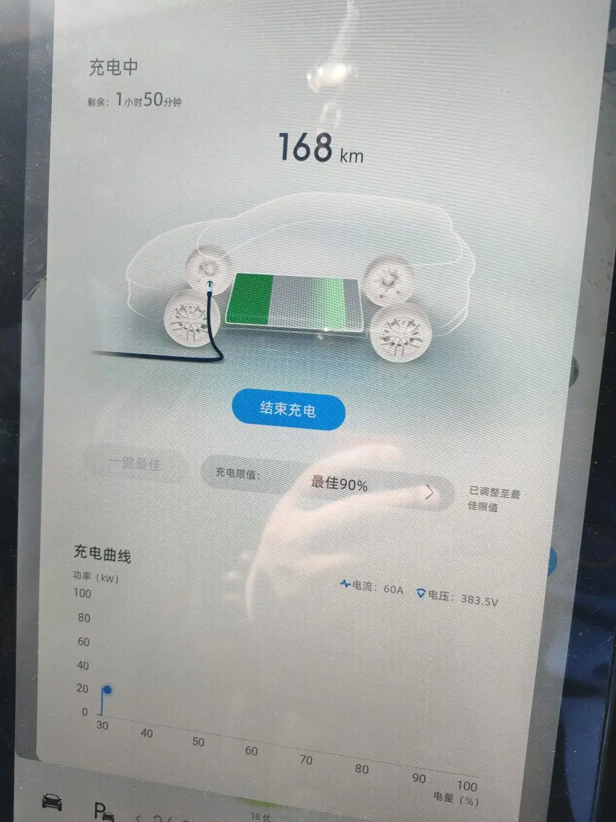 今天新会四季荟这个充电桩真奇葩,车还有168公里,充电电流竟然只有60A,平时都不是这样,啥情况?