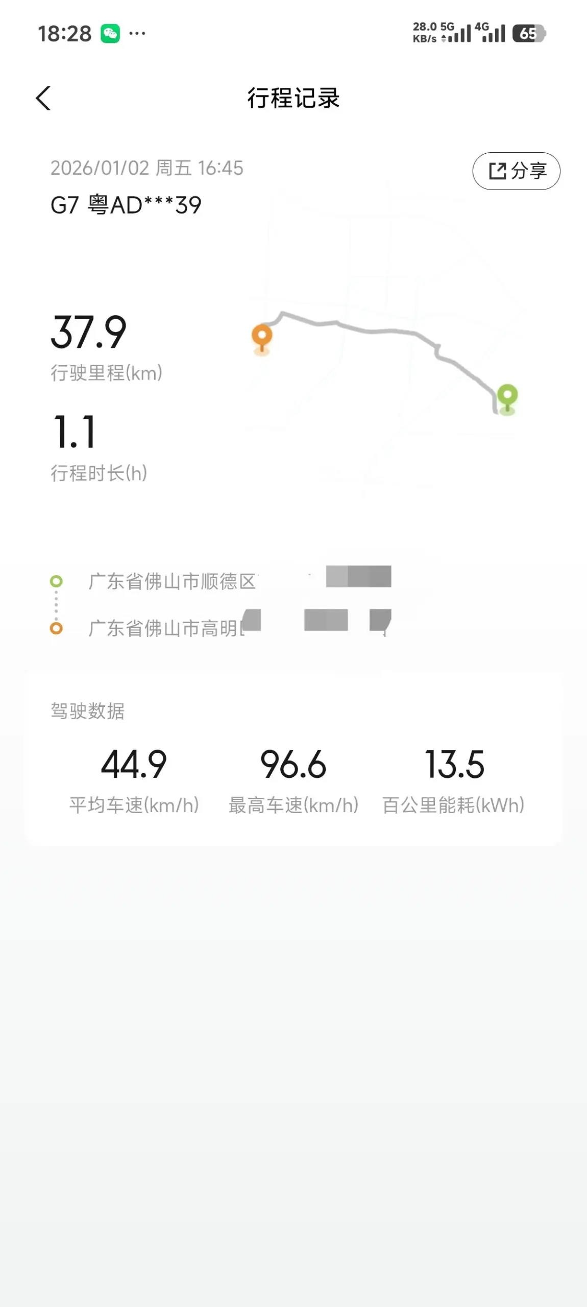 #新年首次出行# 开着G7回家的幸福感拉满2026新年第一次开着小鹏G7出门,从顺德一路往高明走,37.9公里的路程刚好遇上绝美夕阳,车窗外的落日余晖把路都染暖了~开了NGP辅助驾驶,1小时出头的路程轻松不少,百公里能耗才13.5kWh,G7的表现也太给力了!到家就看到金毛趴在窗边等我,新年的第一次出行,被小鹏和家人的温暖裹得满满当当~✨