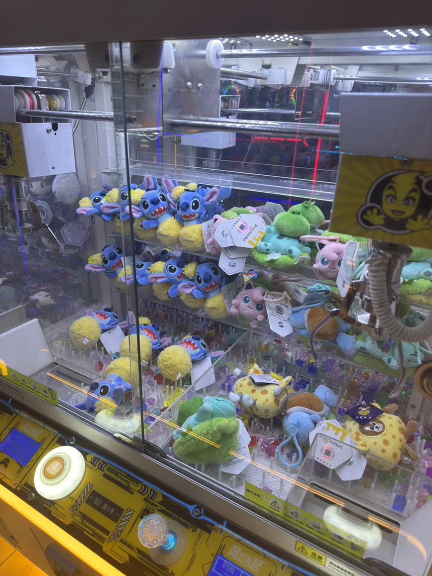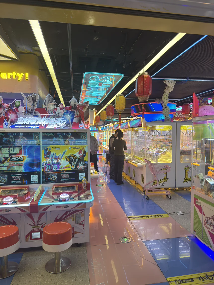 在赛车机上狂飙,对着娃娃机“施法”,