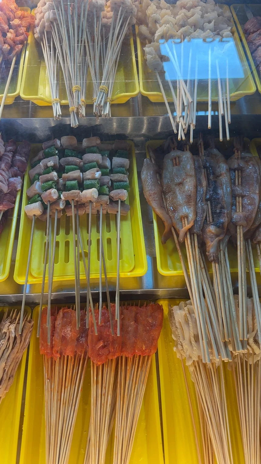 当然,重头戏还是烧烤!肥瘦相间的猪肉串在炭火上滋滋冒油,外焦里嫩的烤鱿鱼甜香可口。我们还点了店里的招牌烤生蚝,嗦起来超过瘾。