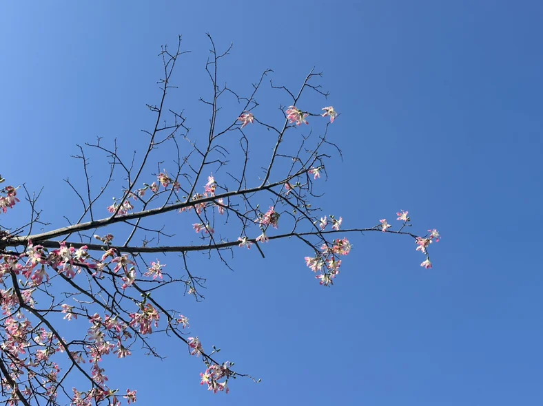 #新年首次出行# 冬日的南方,早上还有点小冷,但为了能在电费便宜的时候充满电,还是早起来到了充电站场。真是“莫道君行早、更有早行人”,偌大的充电站场,已经停满了正在充电的车。充完电、顺便吃个早餐,太阳已经升起来了。冬日的暖阳不可辜负,开着车来到海边,一边欣赏美景、一边跑步,极其舒畅。滩涂在阳光的映射下,静谧而祥和,不知名的果子挂在树上,半黄半绿,似乎在诉说着时光的流逝,紫荆花在阳光里绽放,湛蓝的背景下,好一副冬日美景!