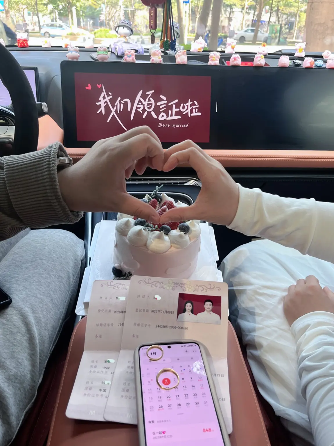 #新年首次出行# 窝在车里晒我们的红本本啦!暖阳透过车窗,把红色烫金的证件照得发亮。新岁的开篇就敲定了终身大事,空气里都飘着甜丝丝的味道。这大概是2026送给我们最珍贵的见面礼,往后岁岁年年,都要和你并肩走。