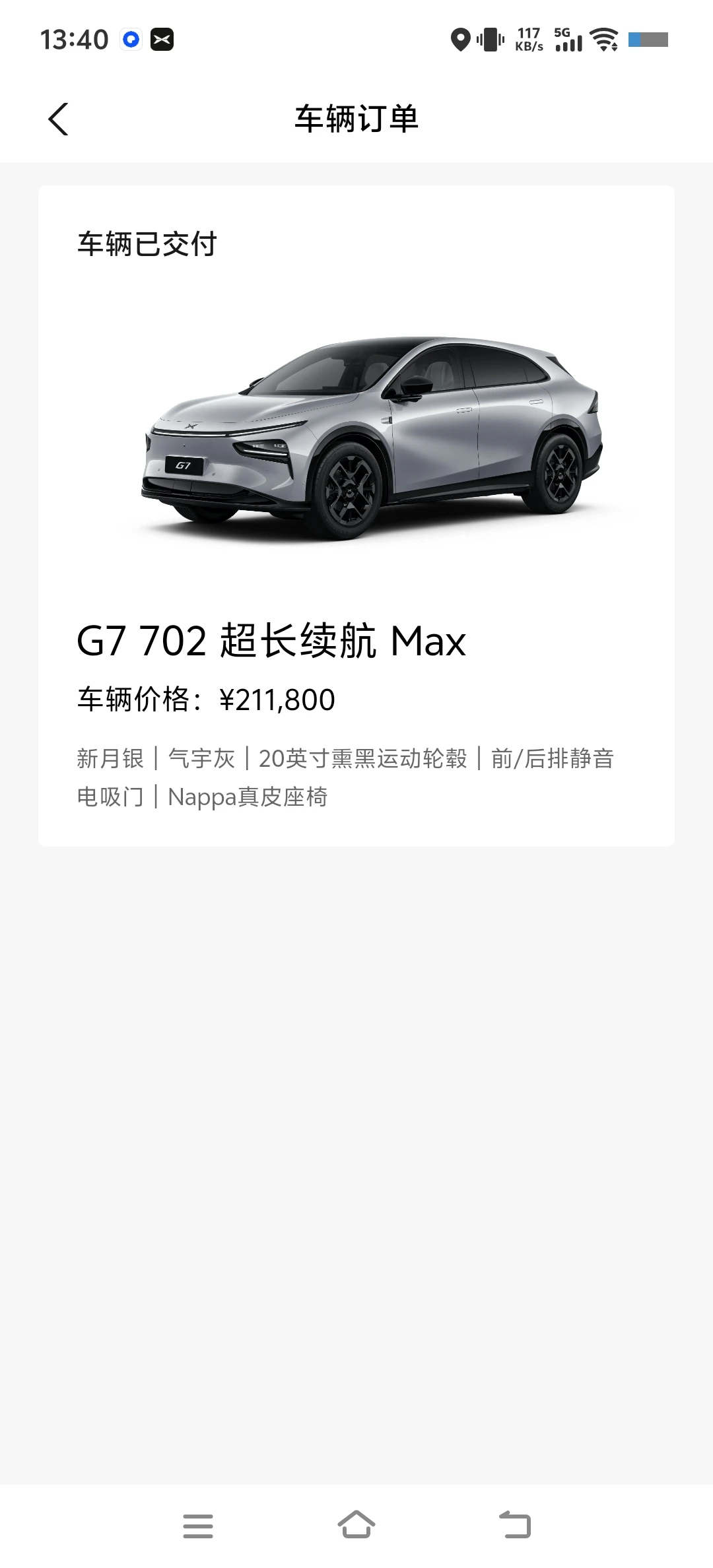 小P已经陪伴我两个月了。回想起两个月前刚订车时。选了702MAX的纯电续航,星月银的外观,气宇灰的内饰。20寸的米其林大轮胎。然后还获得了电吸门和真皮座椅。 这两个月以来,G7那558公里WLTP续航,让人觉得很充足。城区完全够用,跑高速也不需要冲多少次电。空间绝对是充足的,尤其是放倒后排座椅,可以装更多的东西。实用性很强的。 智驾方面也很好。高速辅助驾驶NGP是放心的,城区有很多路辅助驾驶也是可以开的,相信未来会越来越好。总之很不错。 总之一路小P一直在陪伴,让人很安心。现在是用在日常一百多公里的通勤。当然周末郊野和跨省长途自驾也试过。体验感拉满。中看也中用。 #晒小鹏G7大定#