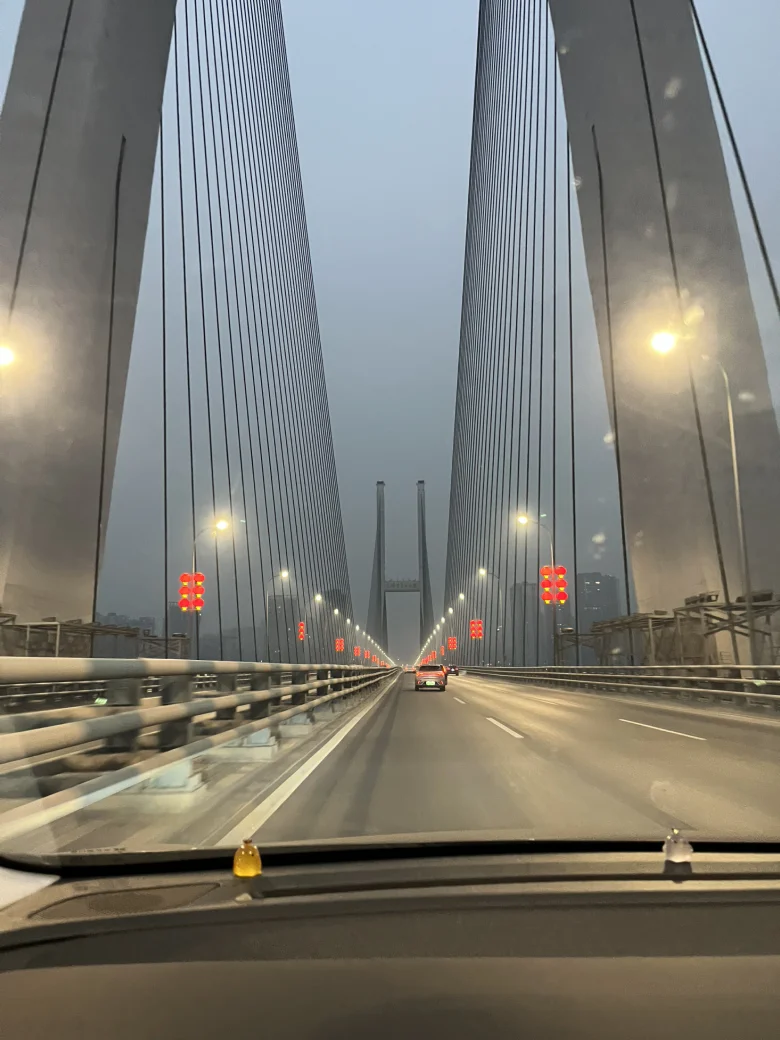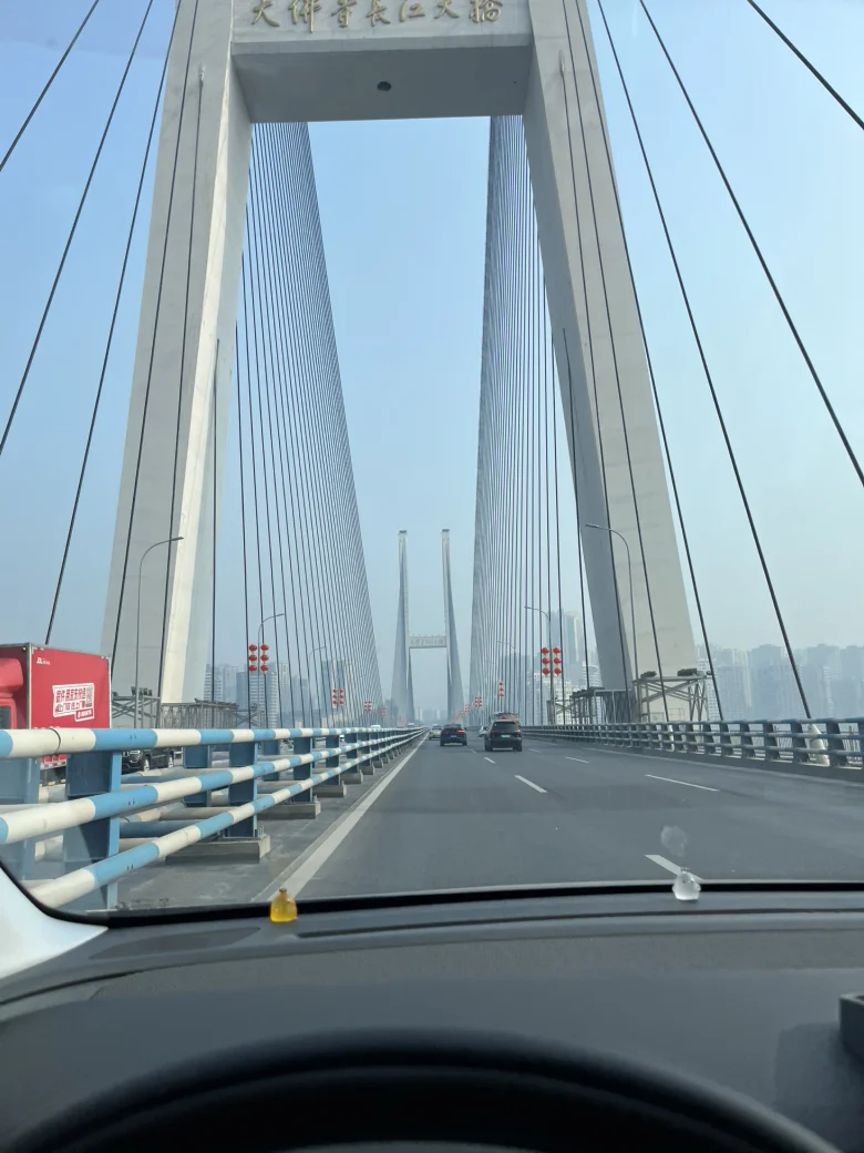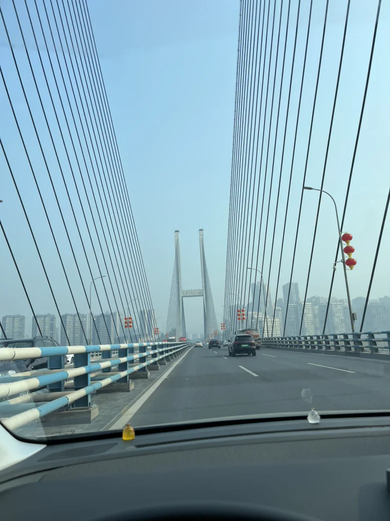 26年第一次出行,依旧是过长江大桥,桥上已经挂满了灯笼。