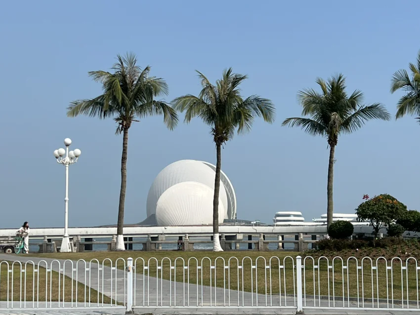 #新年首次出行# 新年出行从深圳走深中大桥到珠海日月贝,比起以前没深中大桥只能走虎门大桥得节省至少一个钟时间。日月贝是珠海大剧院独立建在岛上的建筑。岛上还有购物商场,吃喝娱乐都很方便。连通日月贝的通道还有沿海的步行连廊都很适合拍照看美景呼吸新鲜空气。