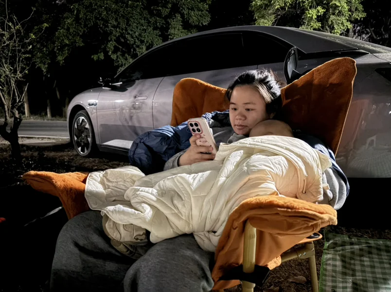 📸图5:天黑后直接把车当背景板,裹着小被子哄宝宝睡觉~