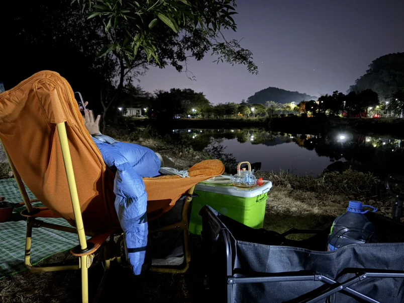 📸图6:夜茶安排上!车机持续供电煮茶,看着湖面的灯光倒影,这才是周末该有的样子~
