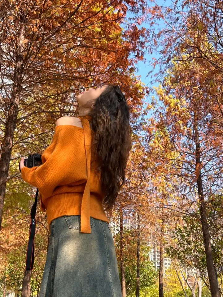 戴针织帽、围焦糖色围巾,文艺感女生带本书往长椅上一放,瞬间化身秋日电影女主,人生照片这不就有了!