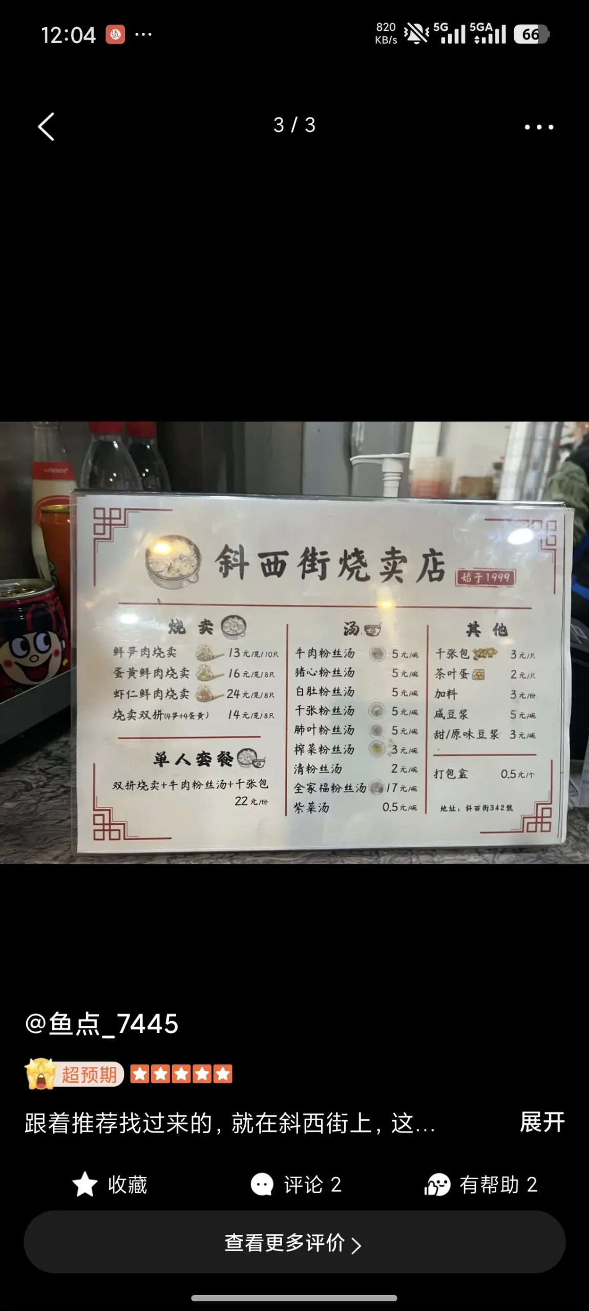 12点半:在这两个景点旁边不远有个别人推荐的斜西街烧麦,排队20分钟吃上。